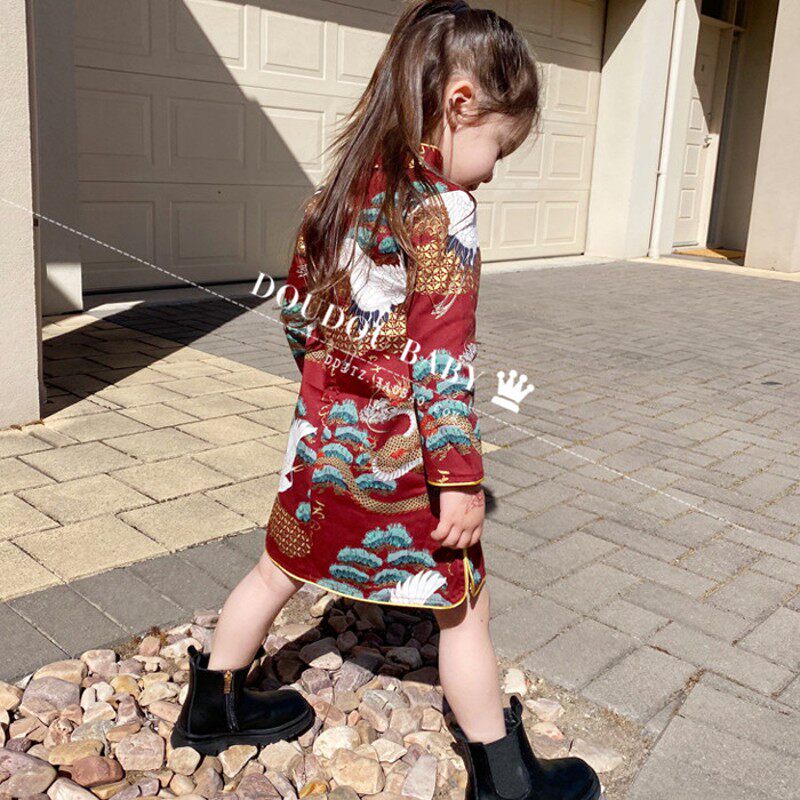 连衣裙闺蜜装 森女部落原创红色新年战袍氛围感改良新中式 旗袍长袖