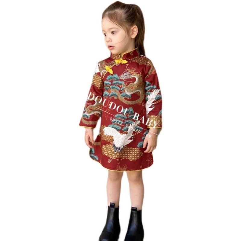 兰陵王 针织提花改良旗袍连衣裙 自制国风复古新中式 秋冬加绒厚款