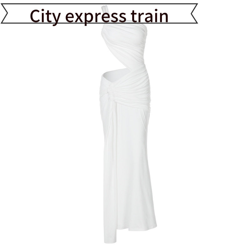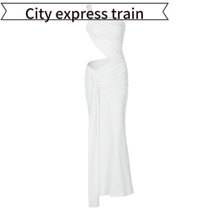 不规则裙 荷叶边修身 怪诞女孩 教堂白鸽超仙木耳拼接抹胸连衣裙女
