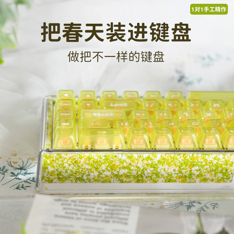 Ainbell客制化键盘Base68 春田花三模高颜值女生办公创意 永生花款