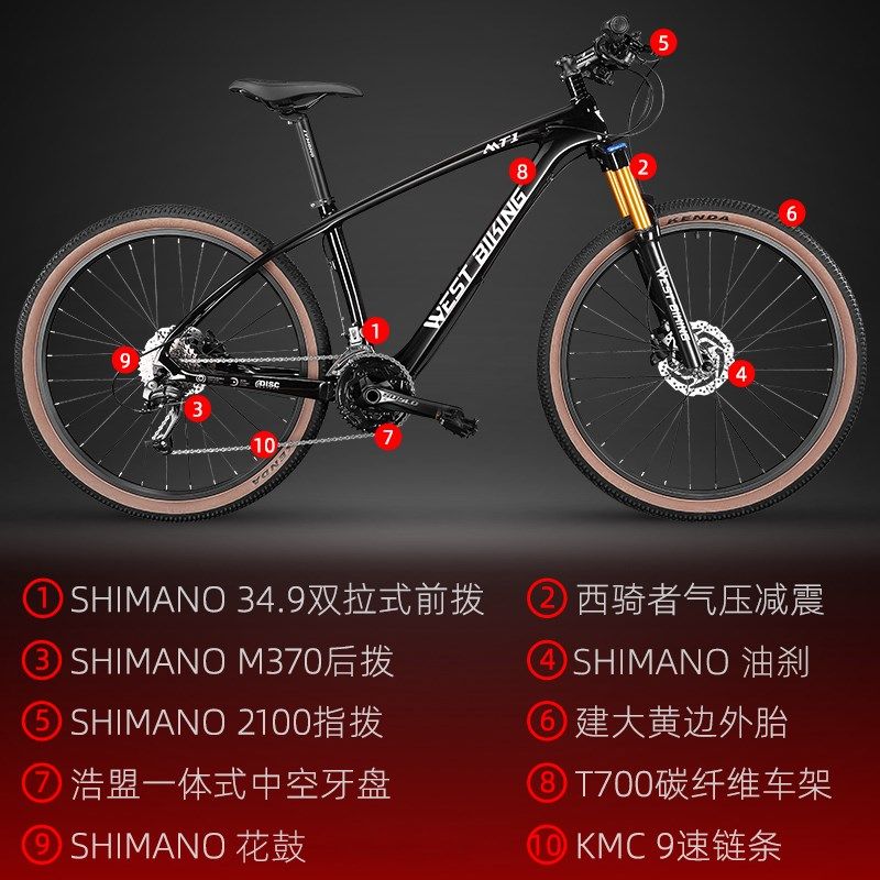 西骑者碳纤维山地车男女变速27速超轻气压减震自行车越野赛车整车