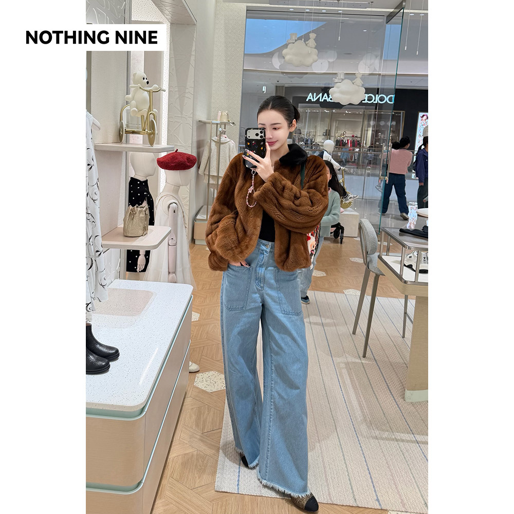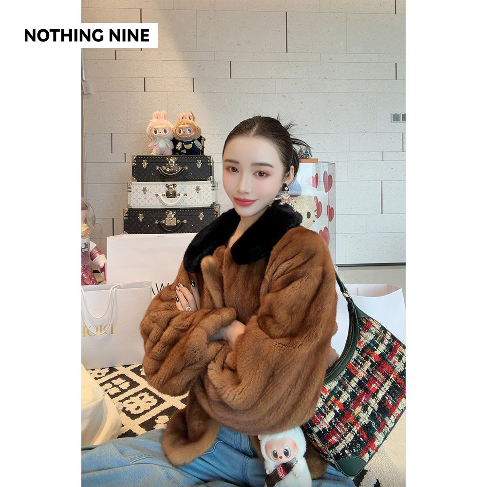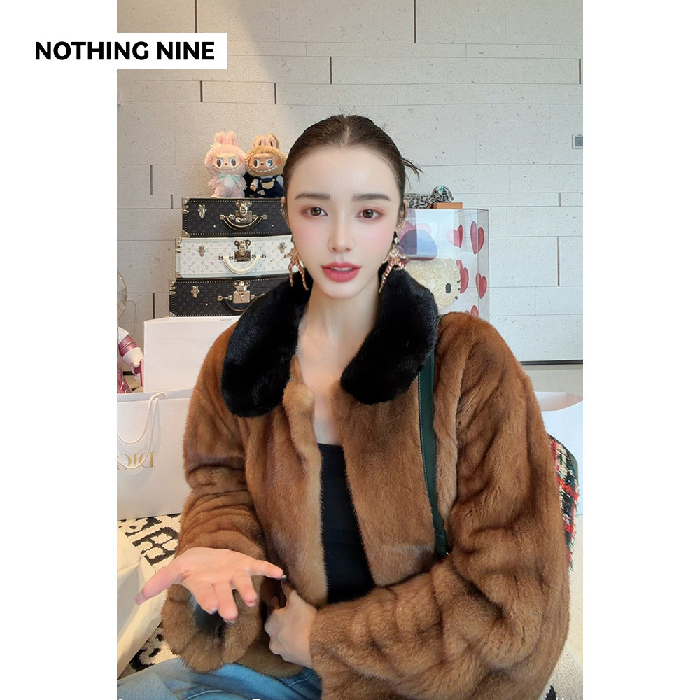 领口可拆卸 进口丹麦天鹅绒短二小母貂娃娃领外套 NOTHING NINE