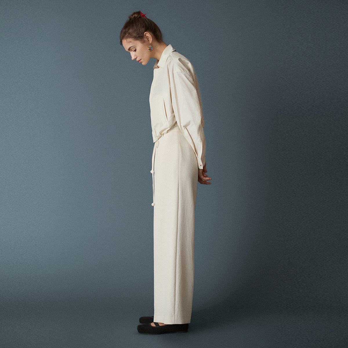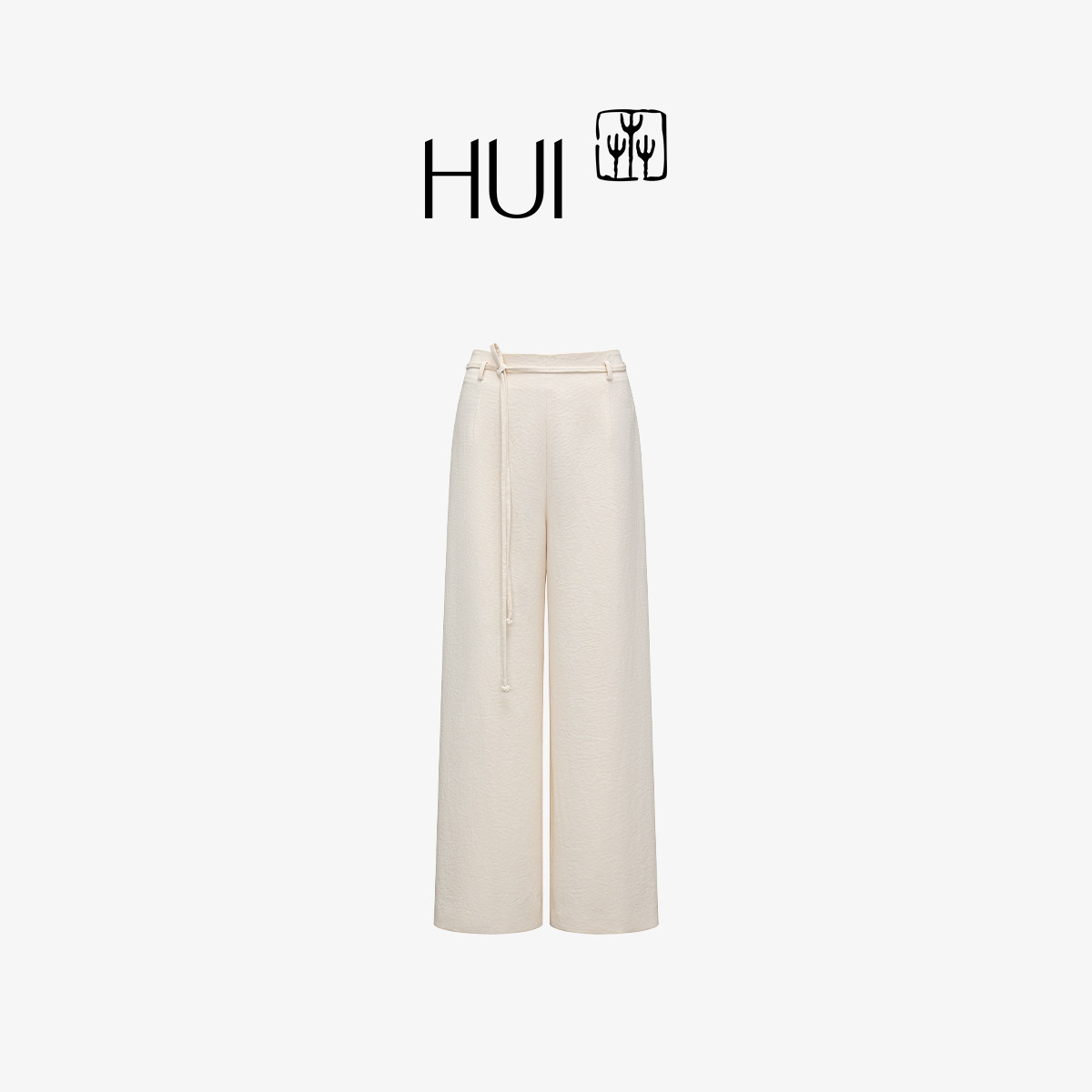 裤 西装 剪裁长裤 2026春季 HUI卉仿麻肌理绳编纽扣腰绳阔版 新款 经典