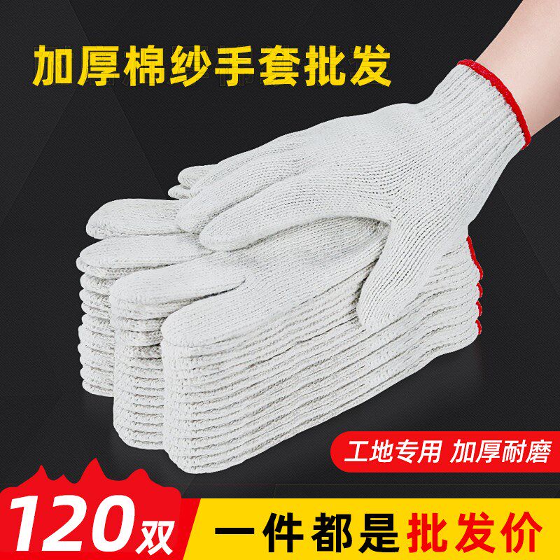 120双手套劳保耐磨工作纯棉y加厚白棉纱棉线防滑劳工劳动修男工地