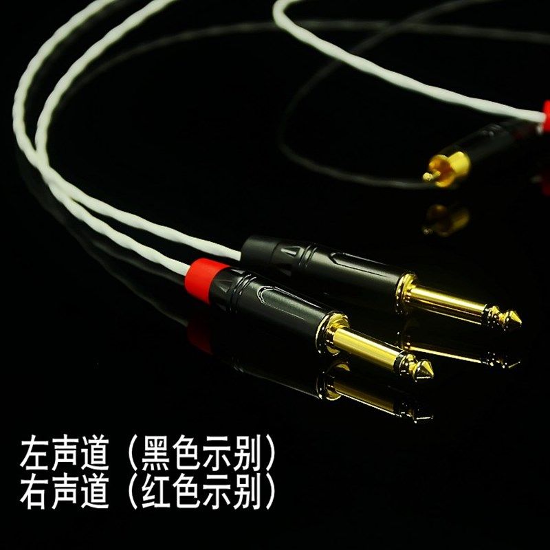发烧级特弗龙镀银莲花头RCA转6.5大二芯6.35声卡调音台功放音频线