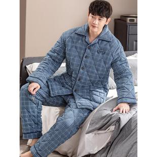 三层加厚纯棉夹棉家居服保暖棉袄中年套装 秋冬款 睡衣男士 浪莎冬季