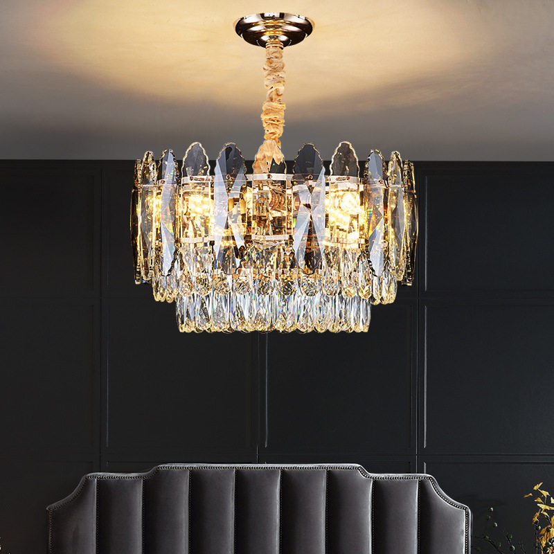 现代轻奢大厅水晶吊灯简约圆形卧室餐厅创意水晶客厅灯吸吊两用灯