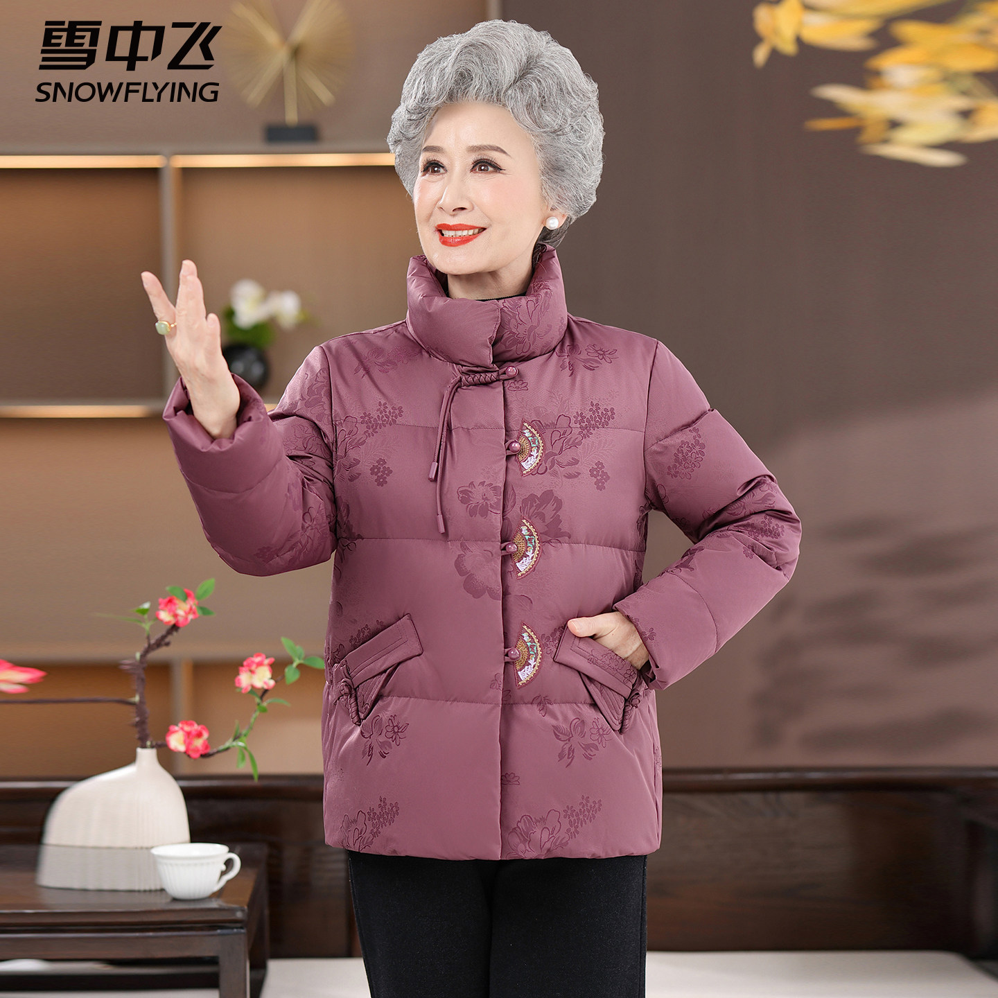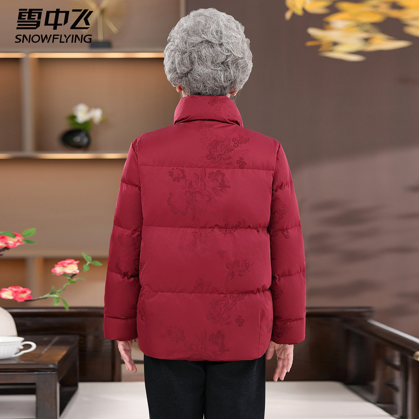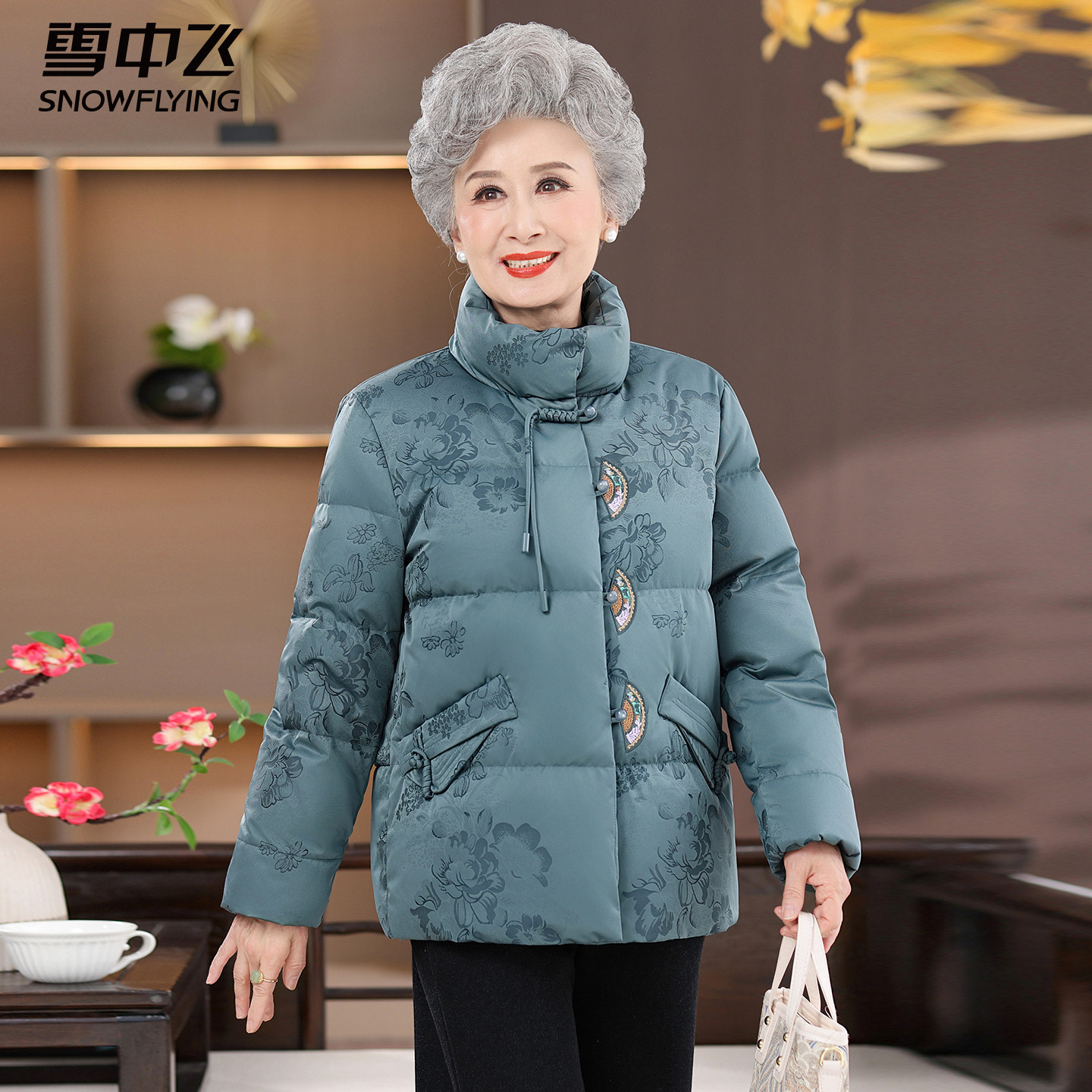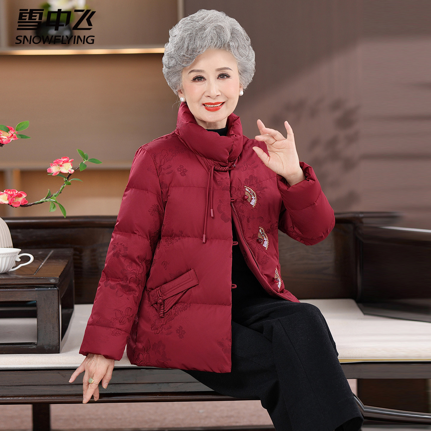 中老年刺绣保暖厚外套 冬奶奶立领冬装 雪中飞短款 羽绒服女2025新款