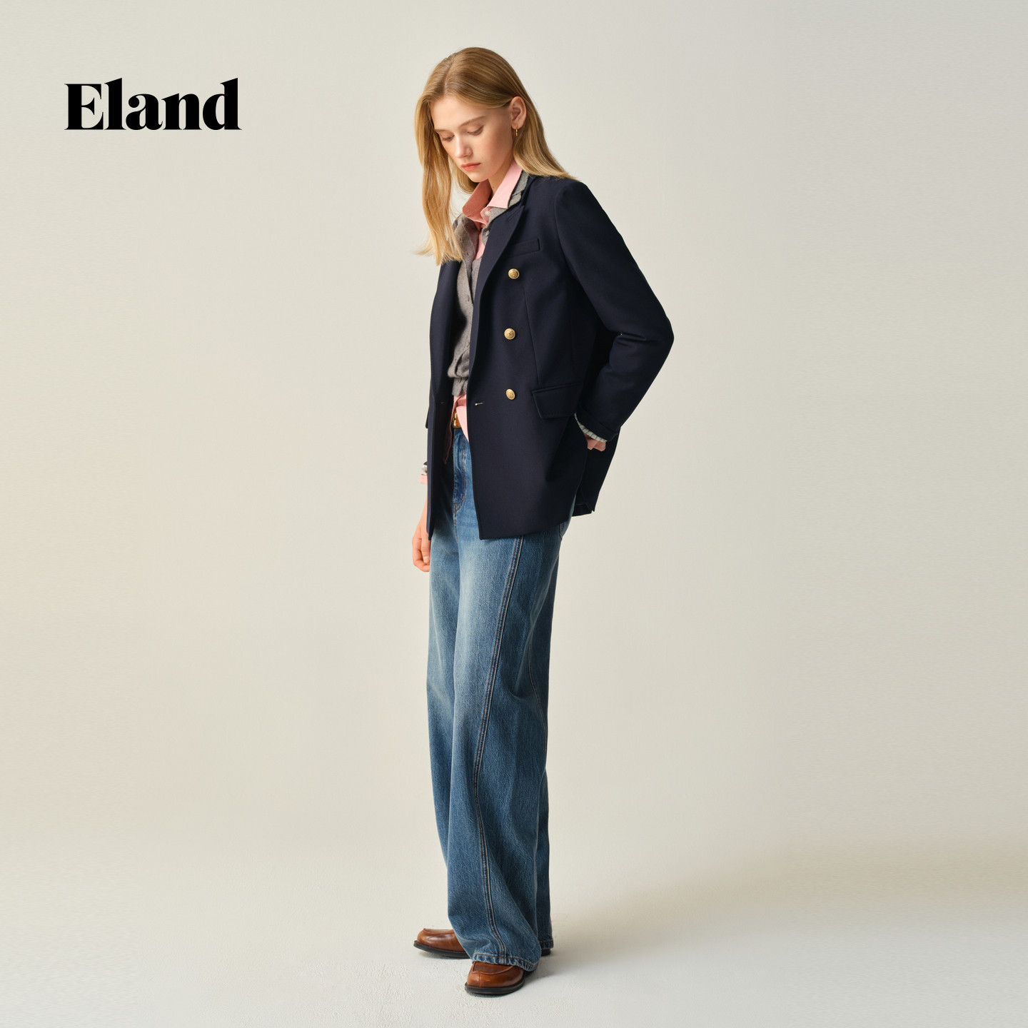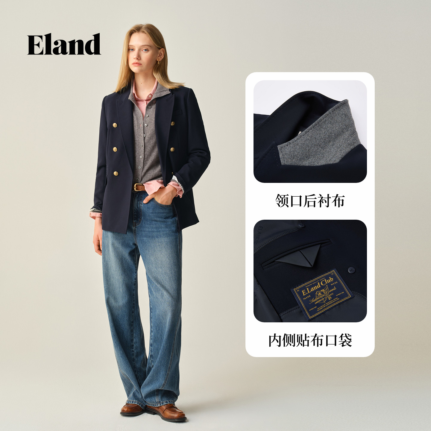 优可丝 通勤外套2025冬季 Eland衣恋西装 双排扣长袖 新款 女时尚