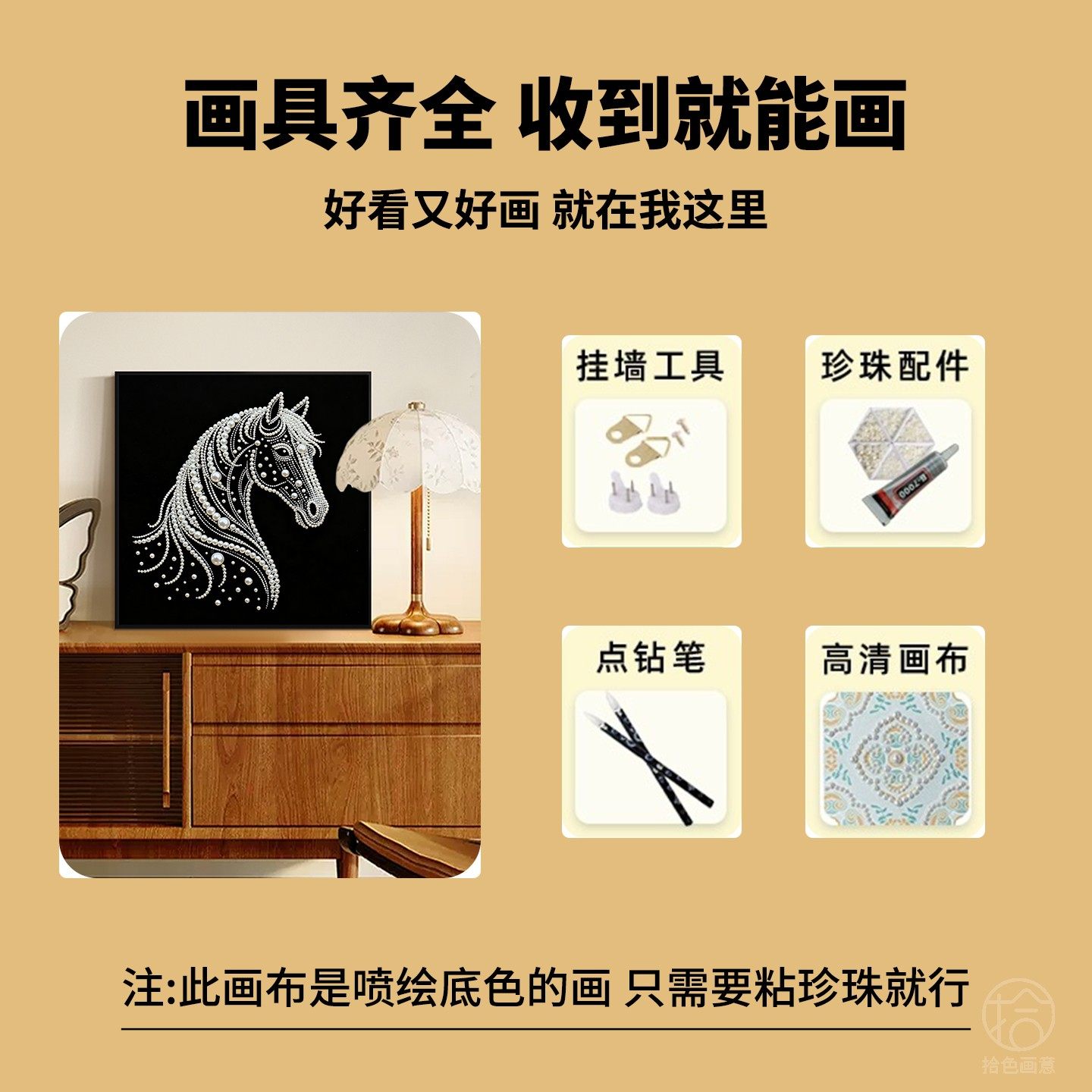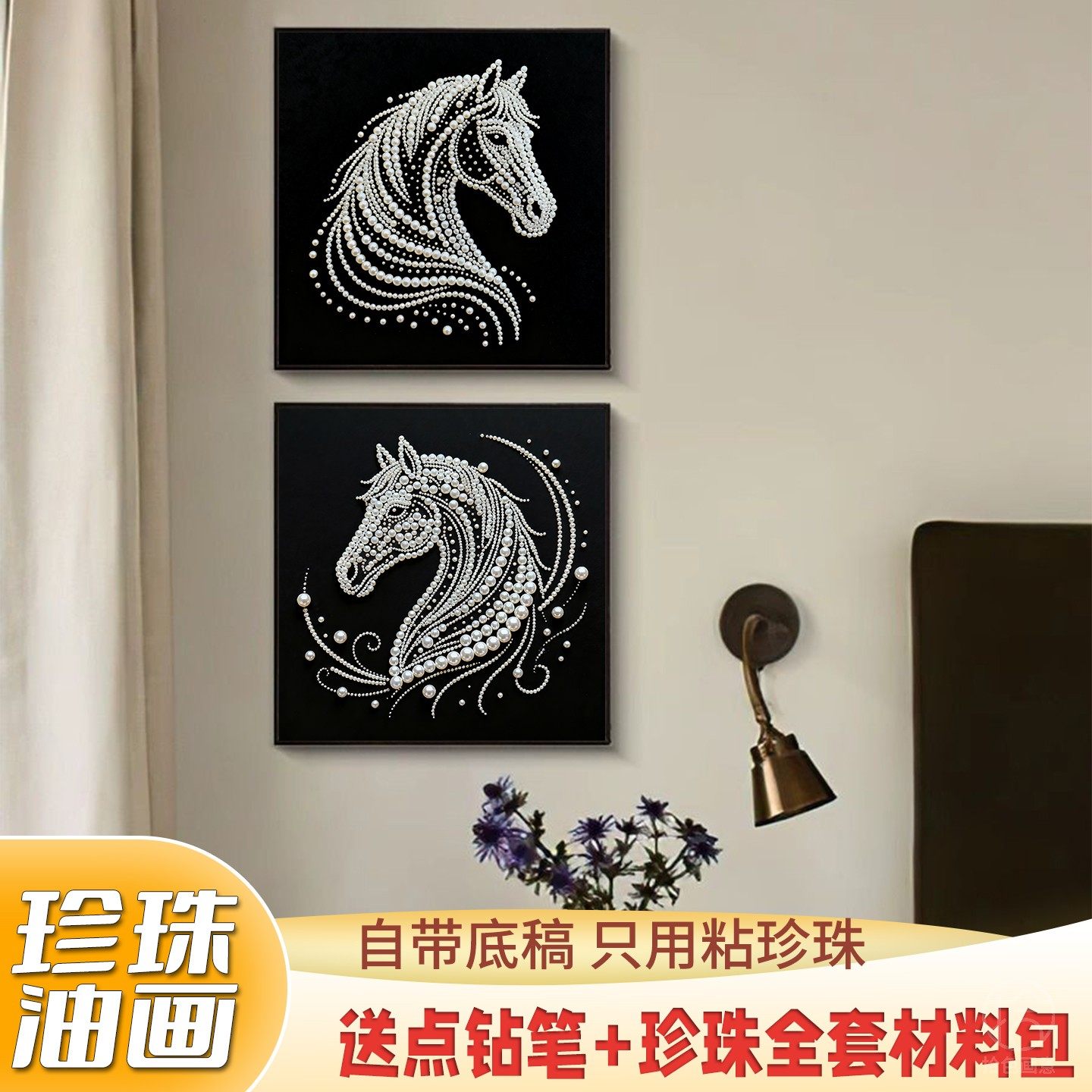 高级感马到成功珍珠画diy材料包手工活动马年数字油画生肖装 饰画