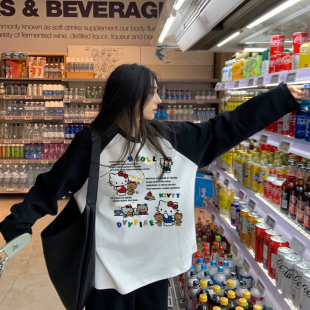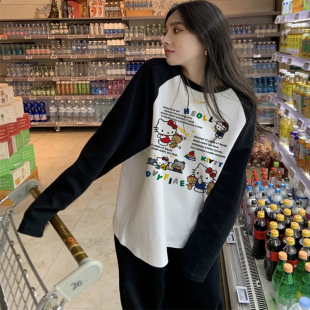 300斤胖MM日系复古凯蒂猫上衣潮 T恤女宽松大码 秋冬打底衫 圆领长袖