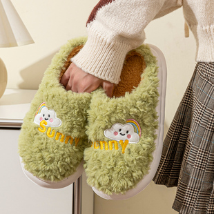 女毛毛绒情侣家居家用厚软底保暖防滑外穿男 月子棉拖鞋 秋冬季 新款
