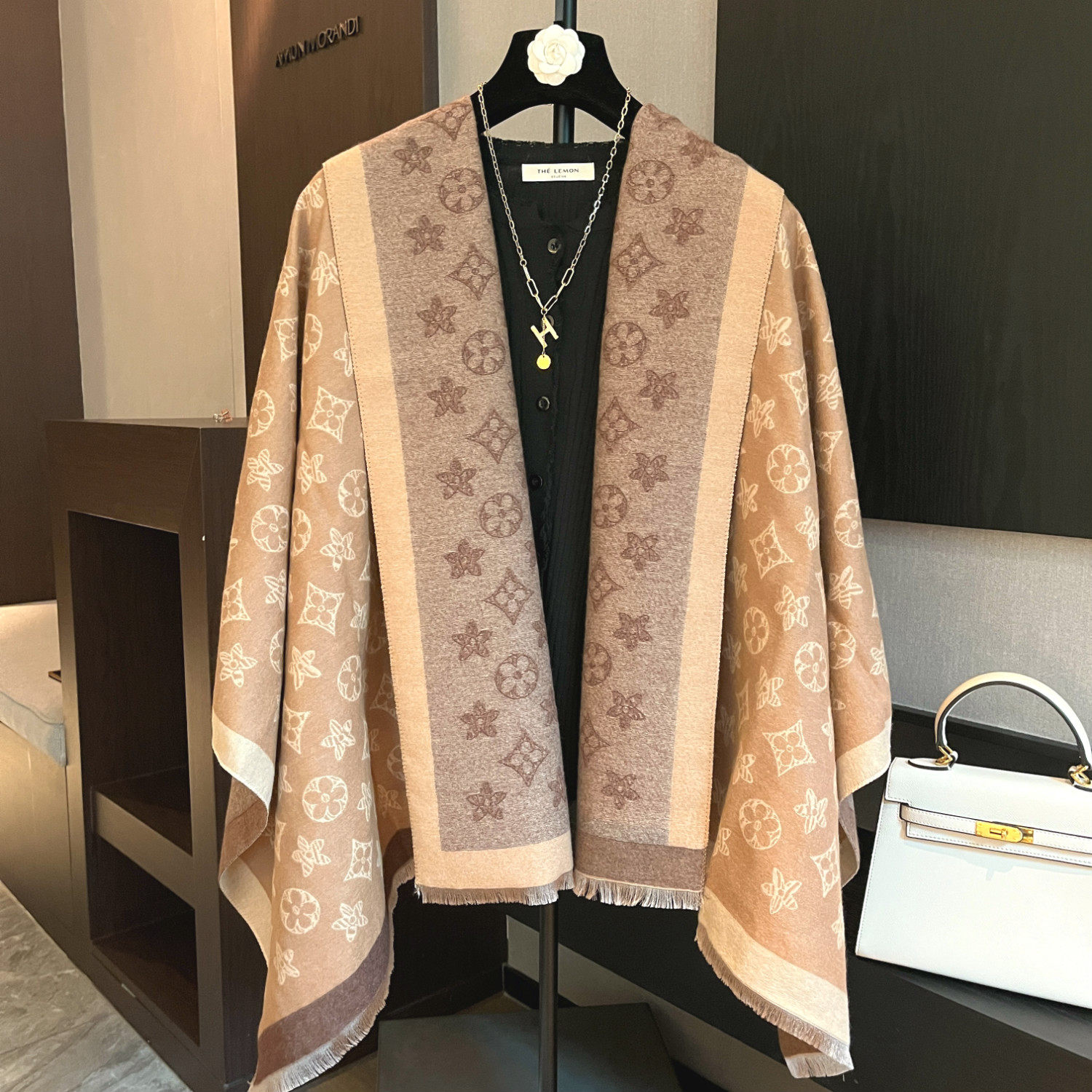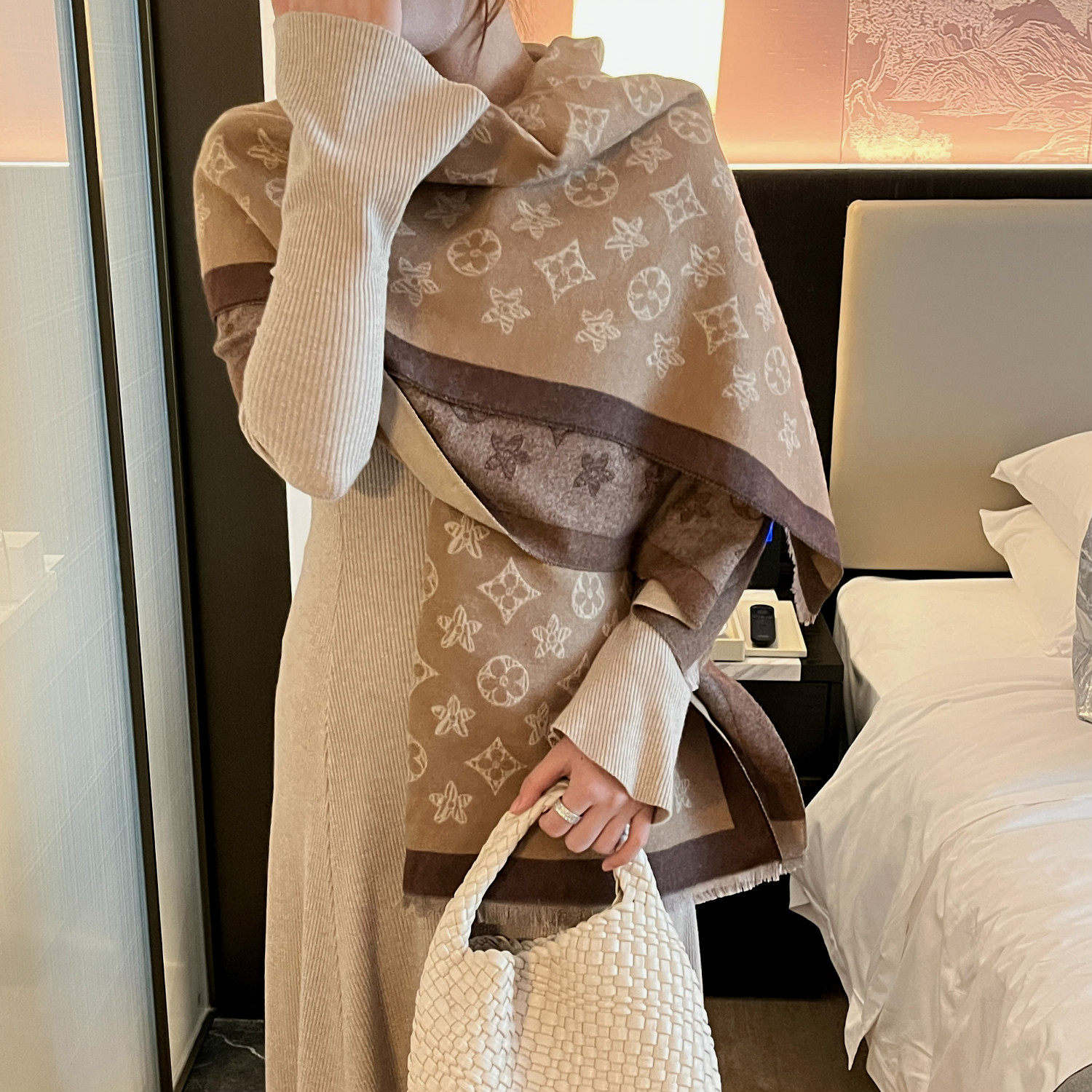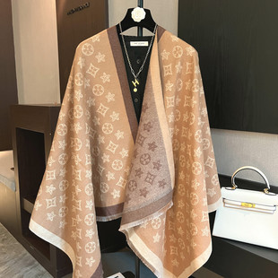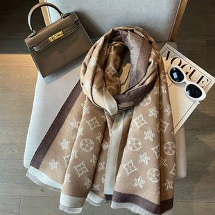 2025新款 保暖百搭披肩围脖 秋冬驼色双面仿羊绒轻奢高端围巾女冬季