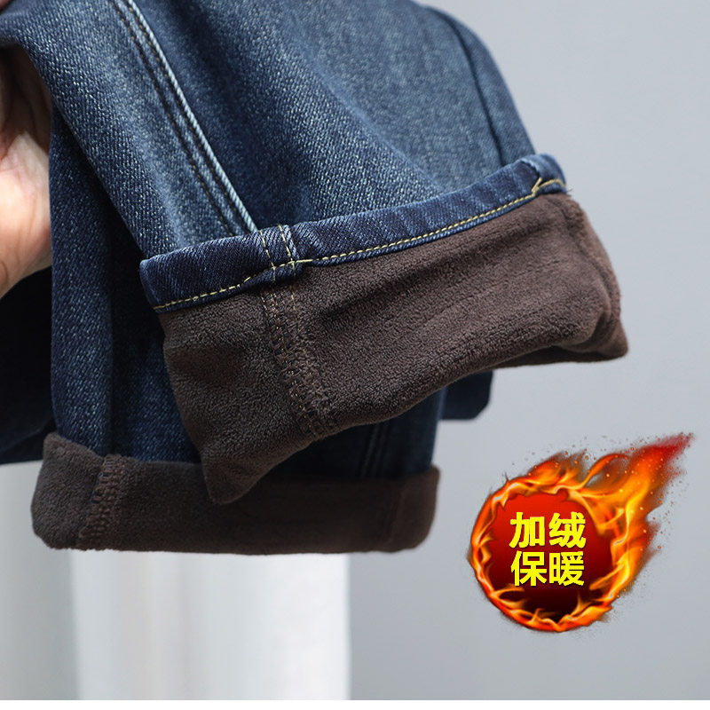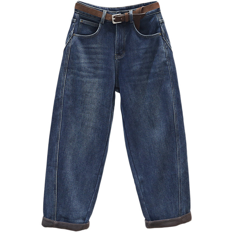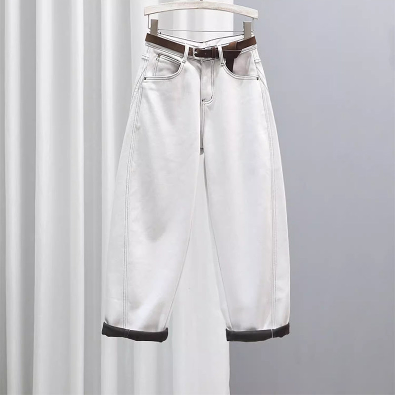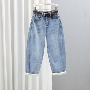 高腰显瘦老爹裤 女加绒保暖拼接百搭哈伦裤 潮 加厚牛仔裤 2025秋冬季