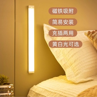 led无线磁吸长条小夜灯充电厨房衣柜橱柜起夜卧室可充电式 按键灯
