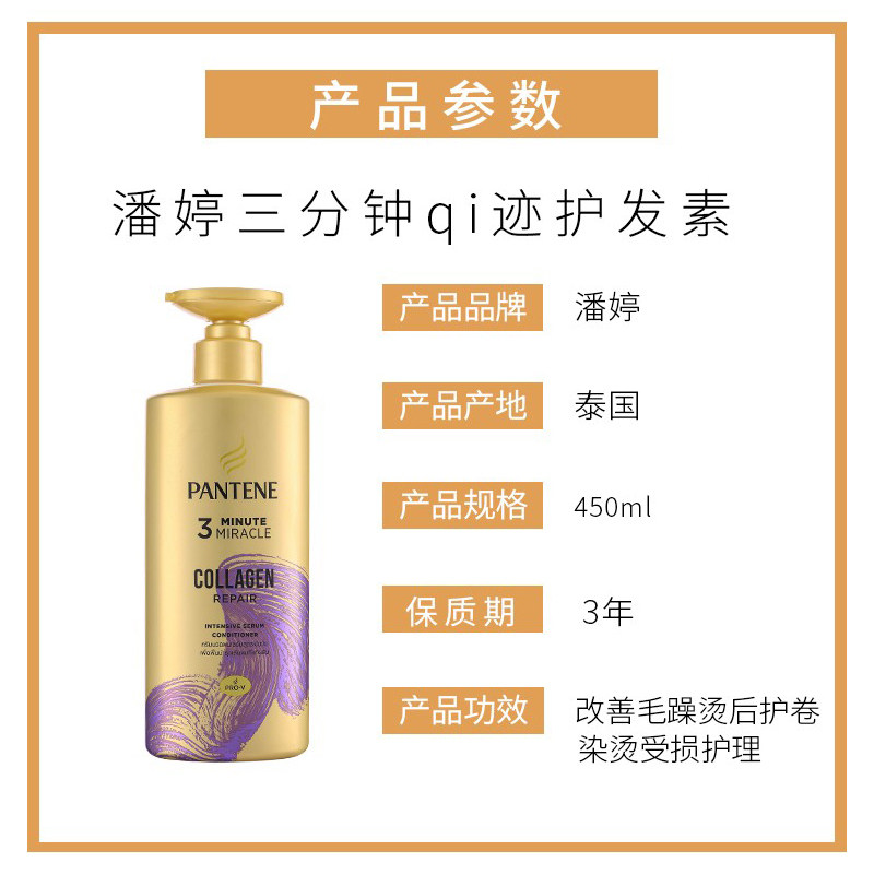 泰国潘婷3三分钟奇迹护发素大规格450ml瓶装 保税直发