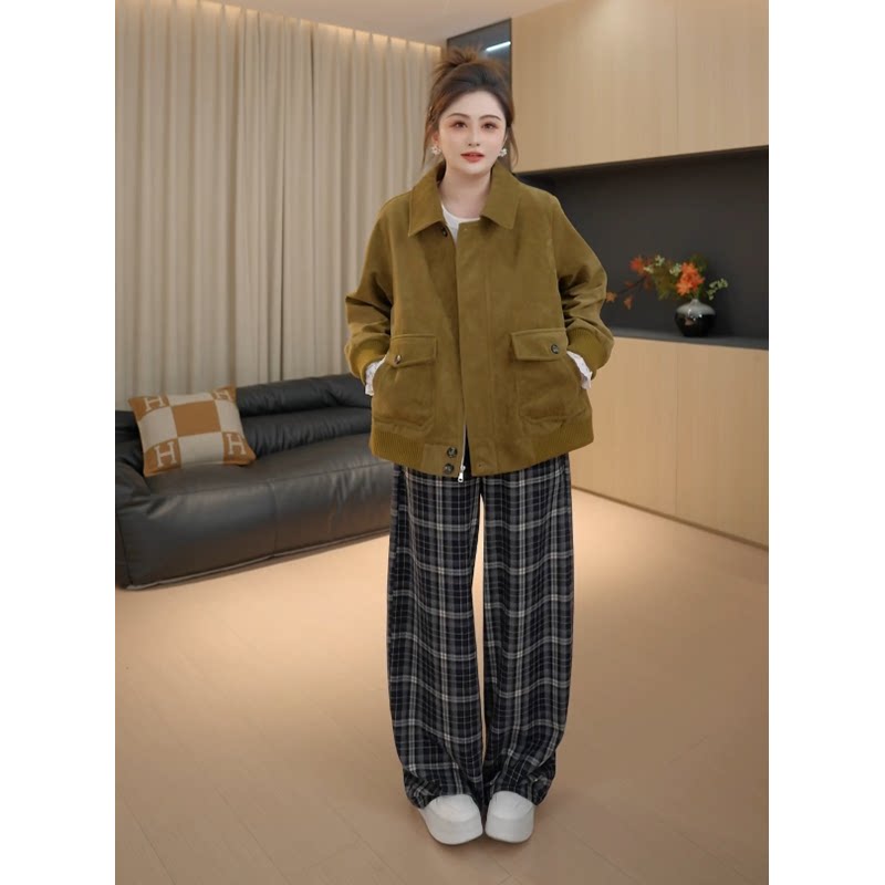 秋季 珍妮外套 新款 时尚 翻领麂皮绒上衣女 百搭厚款 胖佳佳