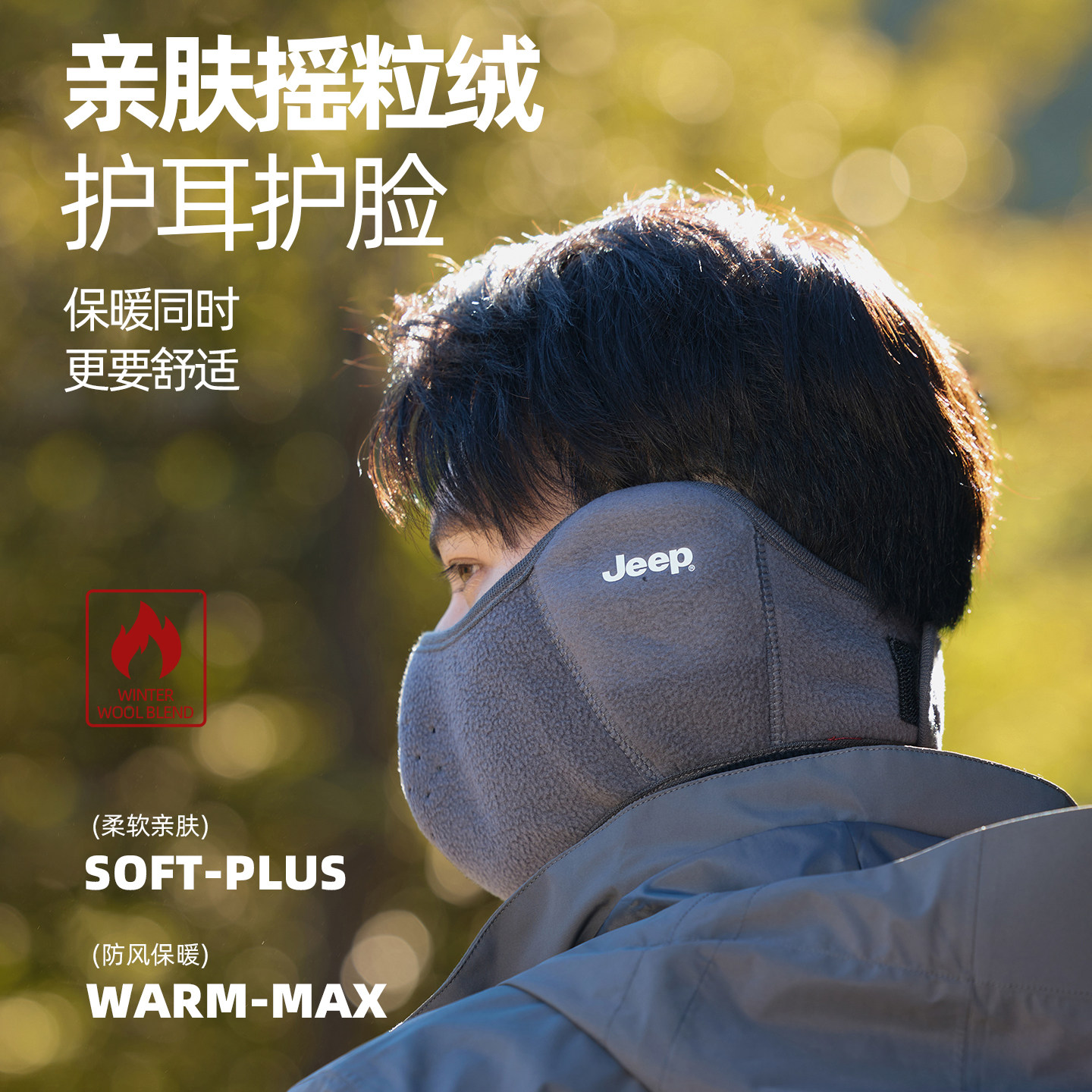 回力毛绒口罩女士秋冬季 加绒保暖东北玩雪骑行防风护耳面罩耳罩男