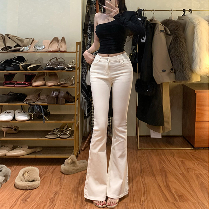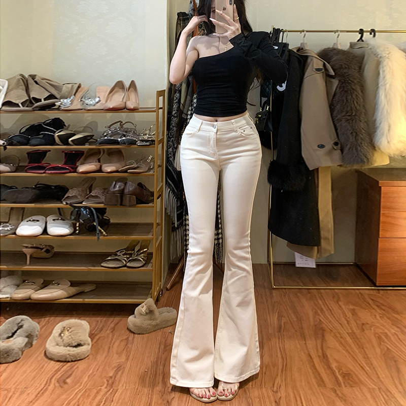 胖mm显瘦高腰喇叭马蹄裤 三防白色不贴腿微喇牛仔裤 大码 新款 女秋季