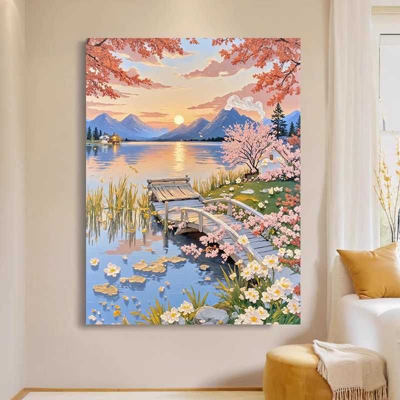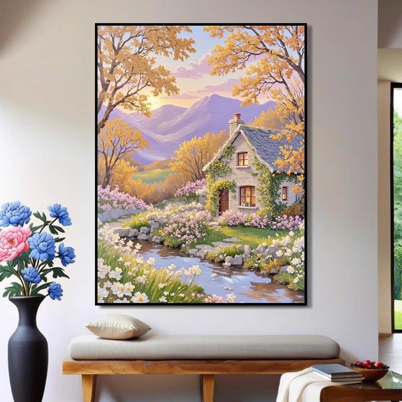 云栖画境装 饰画成品仿油画风景唯美治愈山林小清新卧室客厅摆挂画
