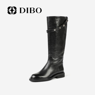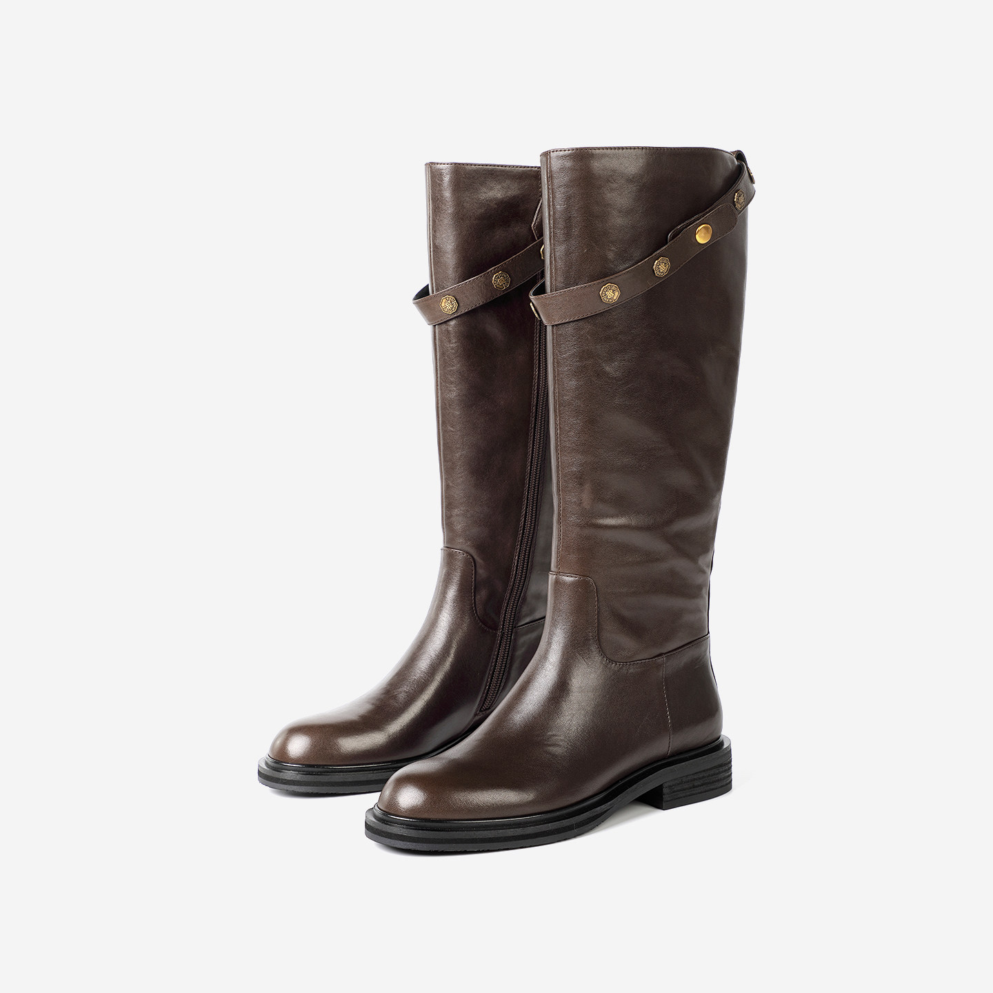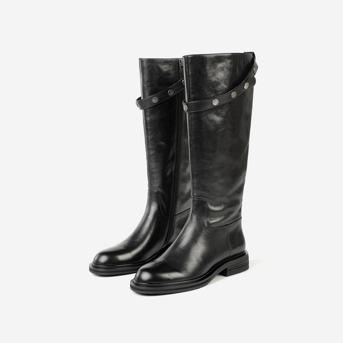 Fermina 显瘦长靴不过膝骑士靴女低跟长筒靴皮带扣机车靴高筒 秋季