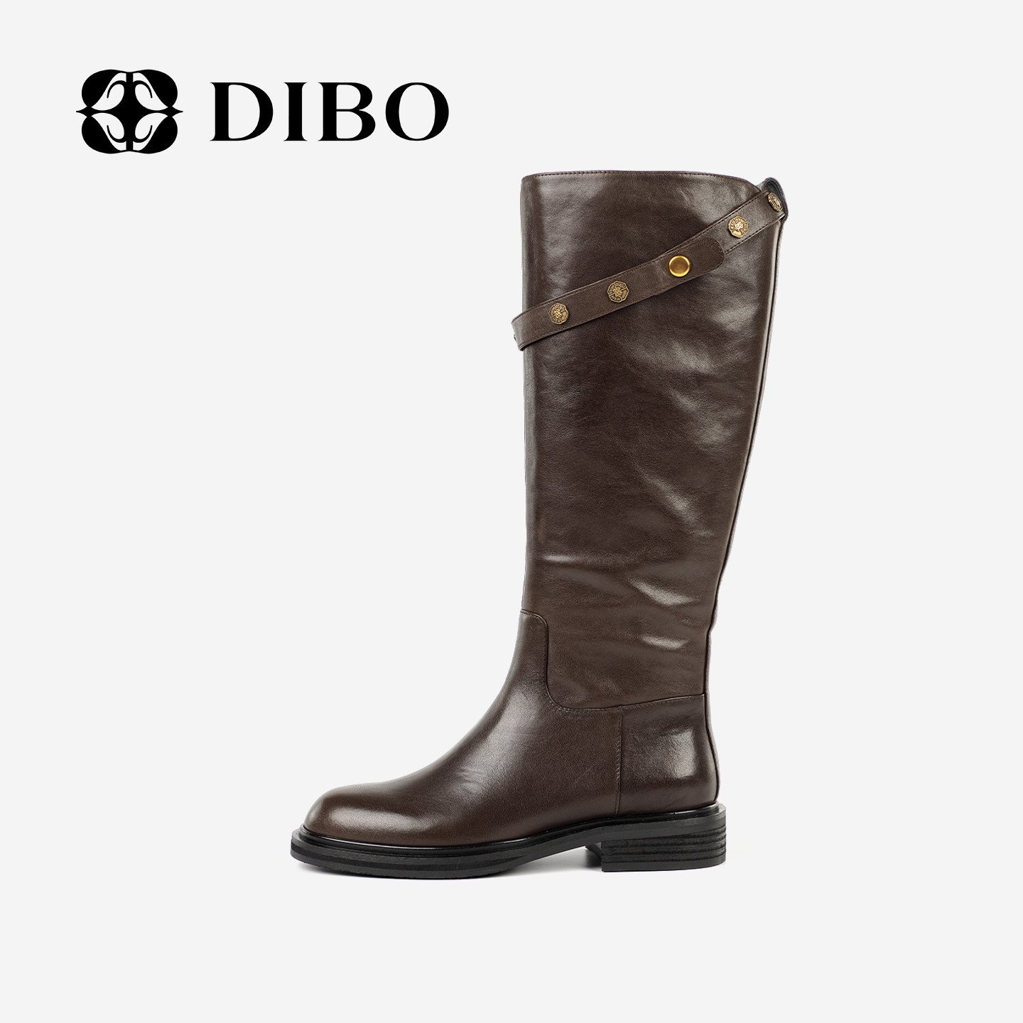 靴皮靴 时装 吴宣仪天美意千金靴复古厚底骑士靴加绒长靴女鞋 子新款