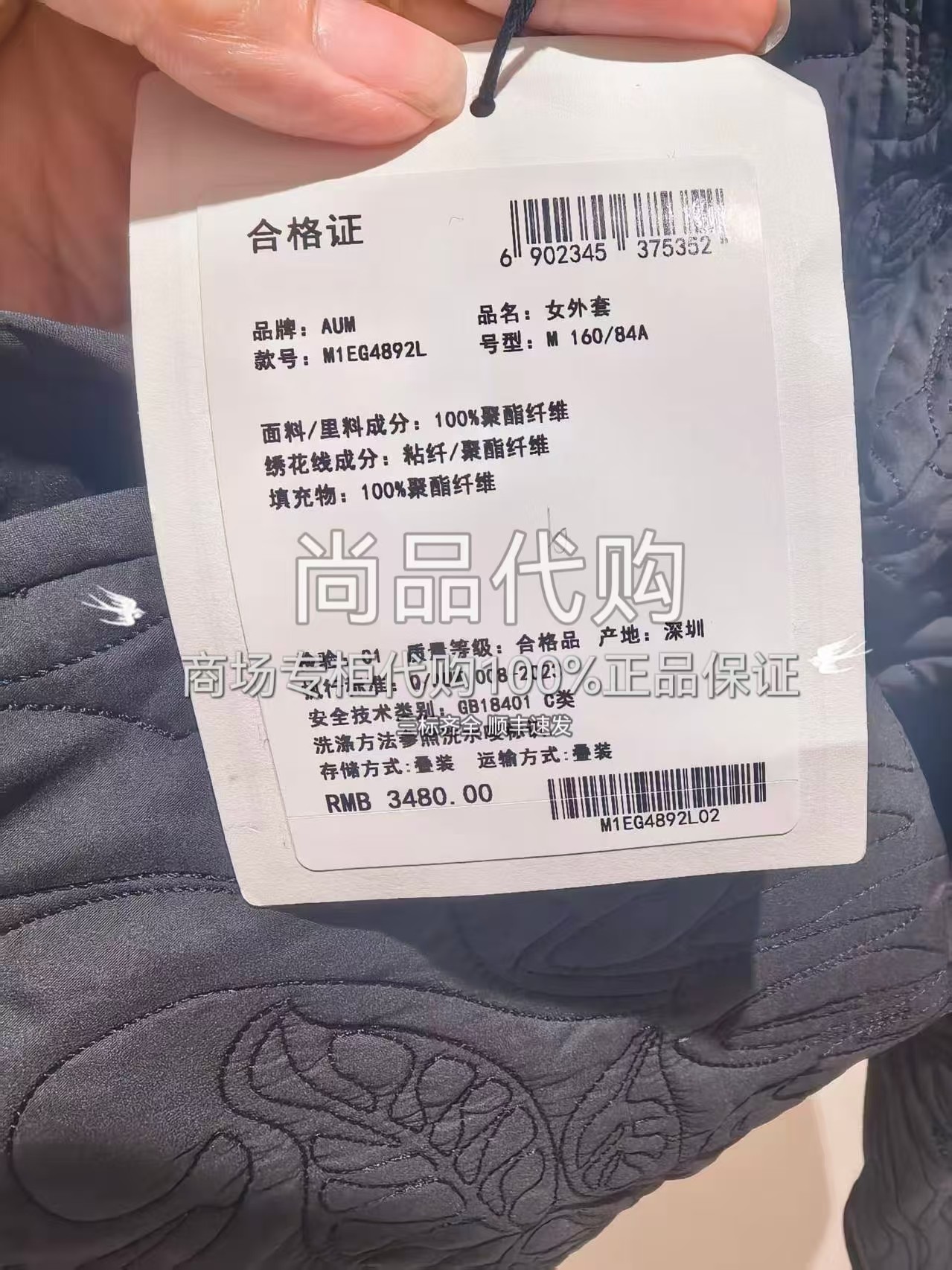 棉服外套M1EG4892L 肌理感新中式 AUM噢姆冬季 3480 专柜正品