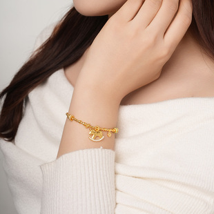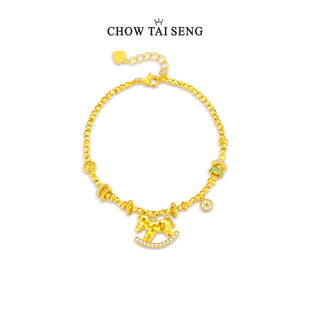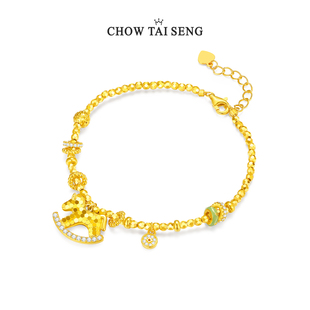 庆祥泰真品朱砂手串女款 官方旗舰店天然和田玉足金黄金手链女 正品