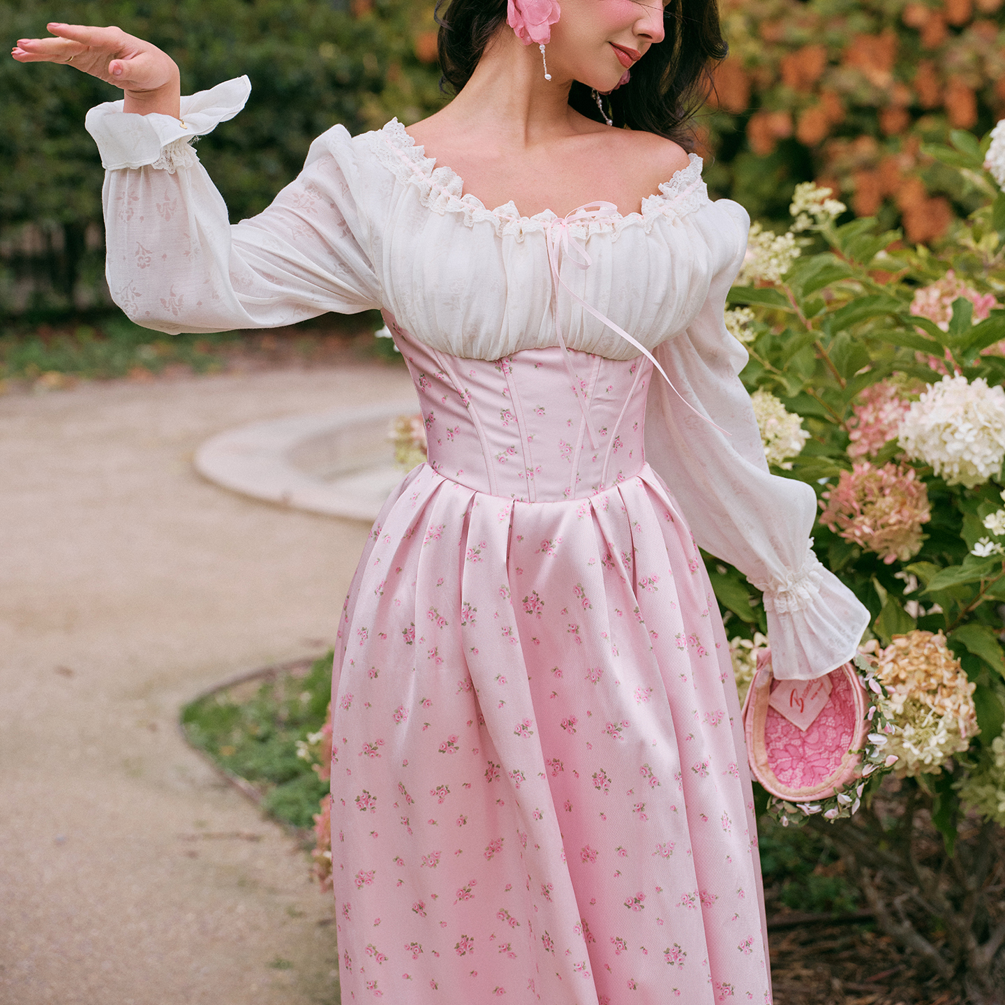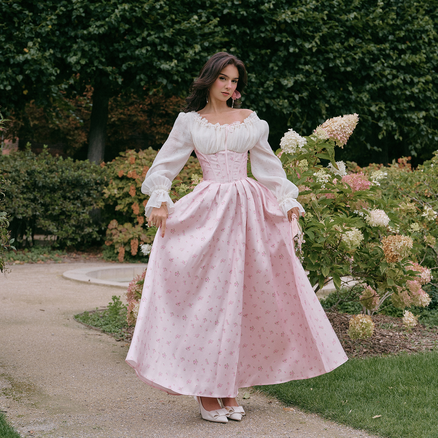 宫廷风鱼骨收腰假两件两穿长款 法式 连衣裙女秋 玫瑰乐章 LaceMade