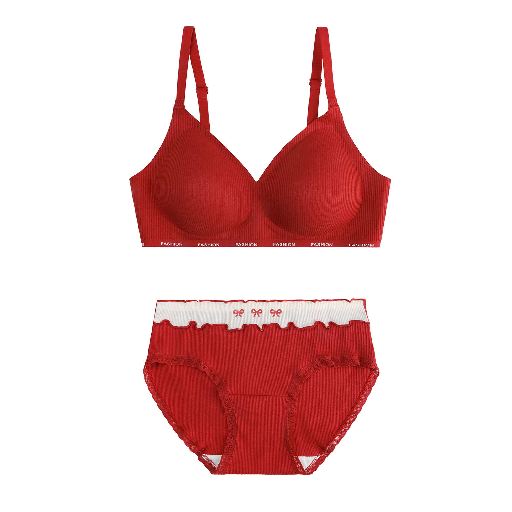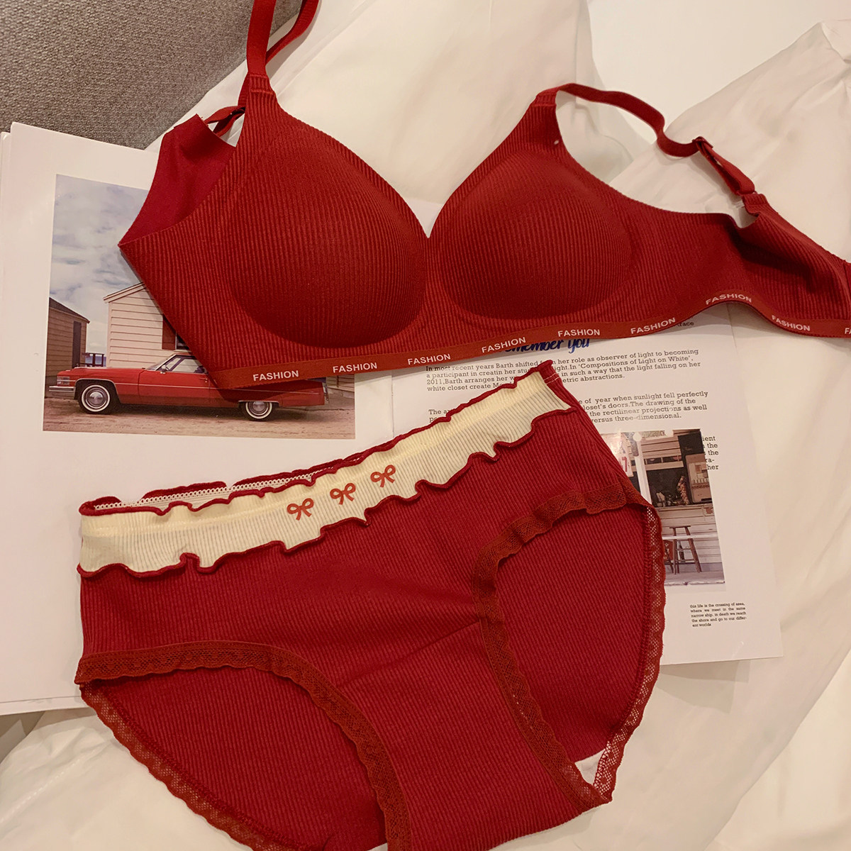 女无痕舒适小胸聚拢结婚新娘文胸 套装 馨帮帮Bra 红色本命年内衣裤