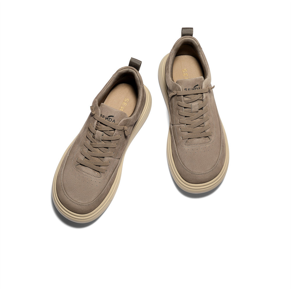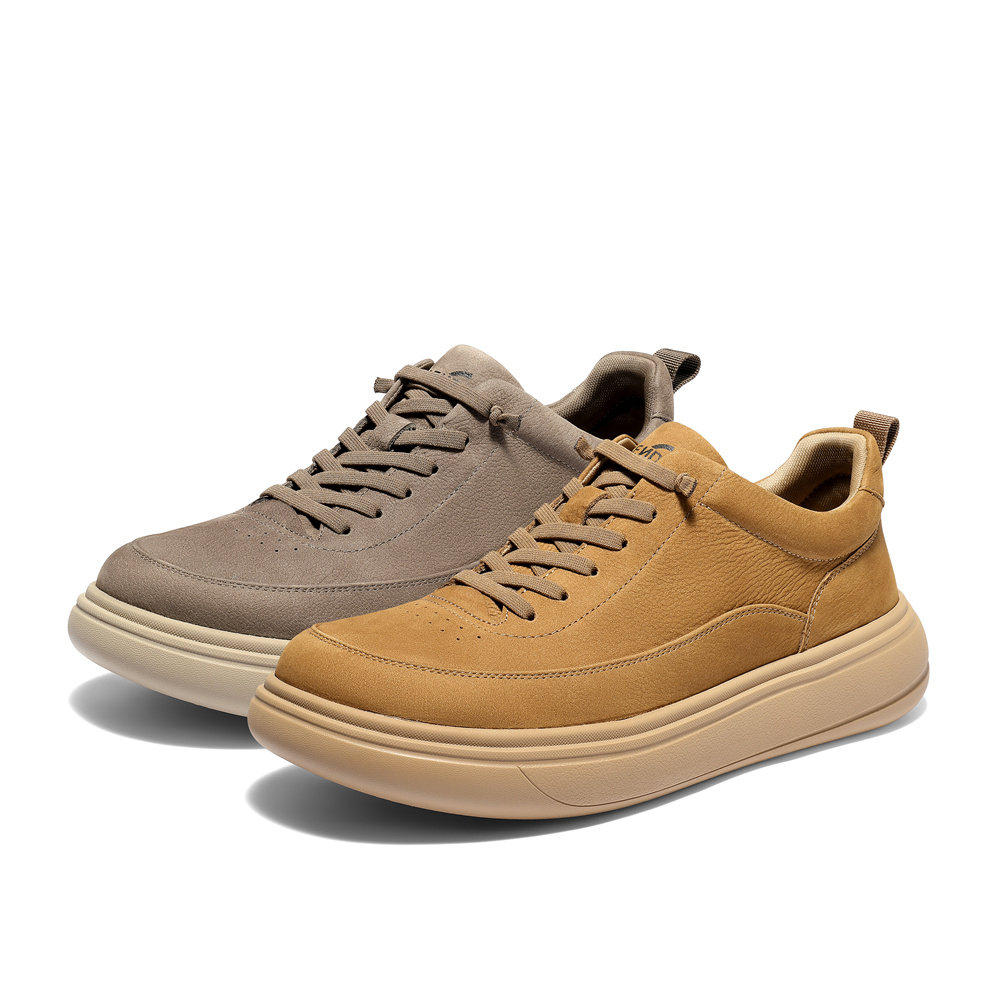 加绒保暖休闲棉鞋 骆驼咖豆鞋 头层牛皮高帮复古板鞋 新款 男2025冬季