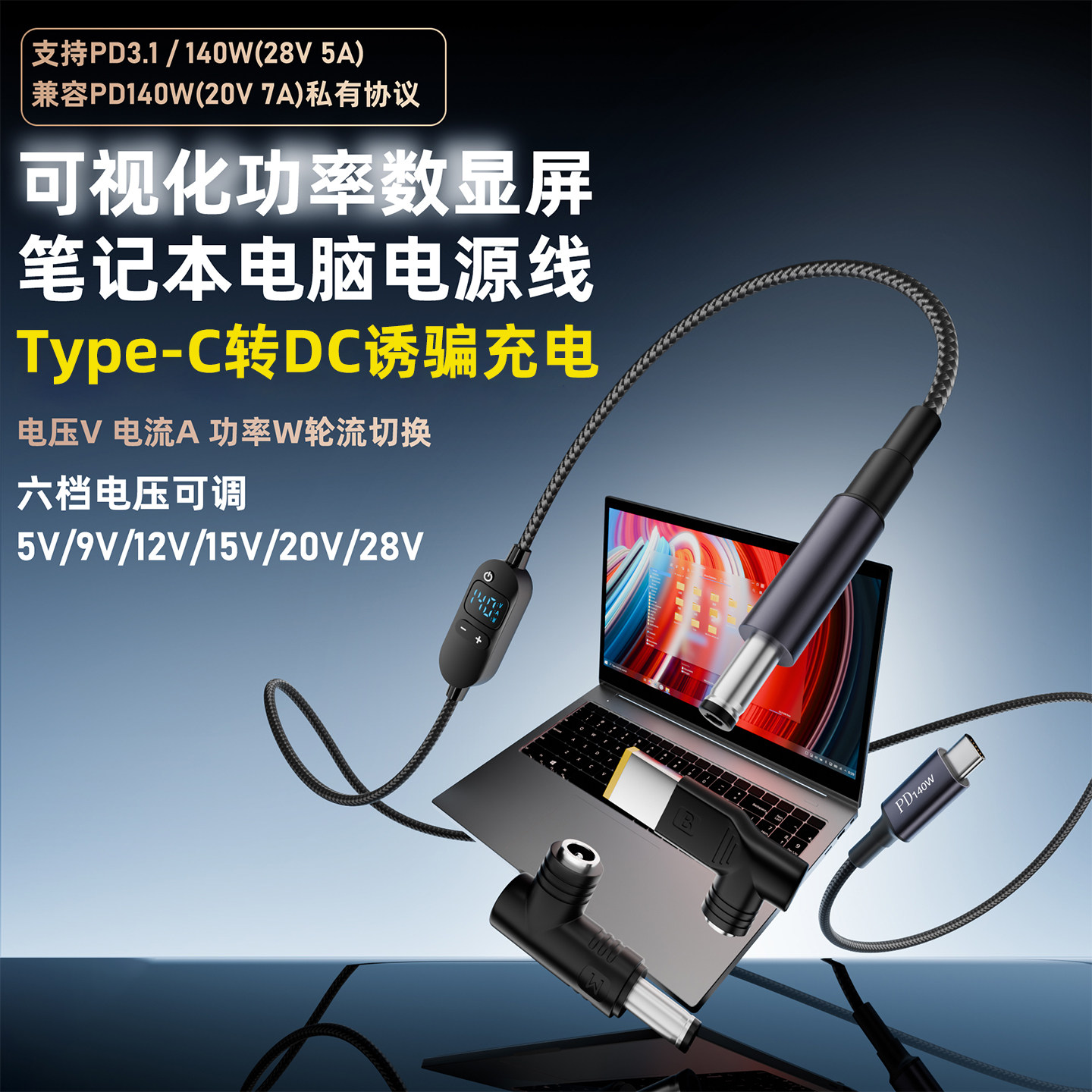 20V typec转DC诱骗线5525电源线PD快充140W充电线圆孔dc5.5可调电压5V 15V 12V 28V笔记本电脑路由器转接