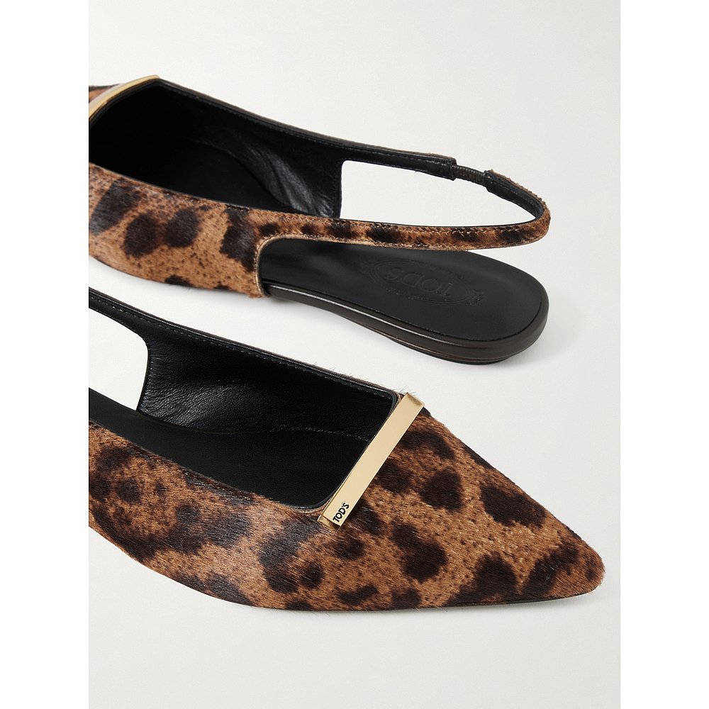香港直邮潮奢 女士 TOD 托德斯 精饰豹纹小牛毛露跟平底 1h可退
