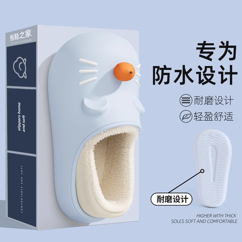 女款 厚底防滑包头拖鞋 居家室内保暖舒适月子鞋 冬季 新款 朴西棉拖鞋