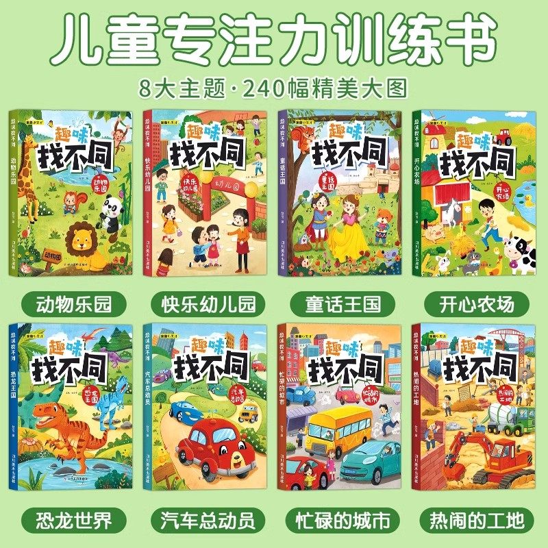 10岁幼儿园图书找图案找茬 书逻辑思维训练绘本宝宝智力书 全8册趣味找不同专注力注意力训练全套4本游戏书益智早教儿童3