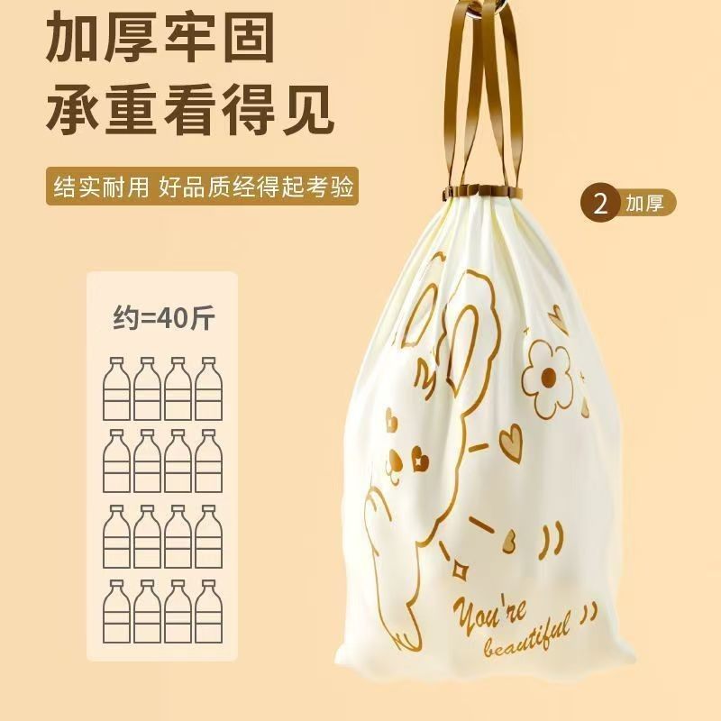 家用加厚卡通抽绳式 垃圾袋加厚手提厨房宿舍学生大号黑色塑料袋