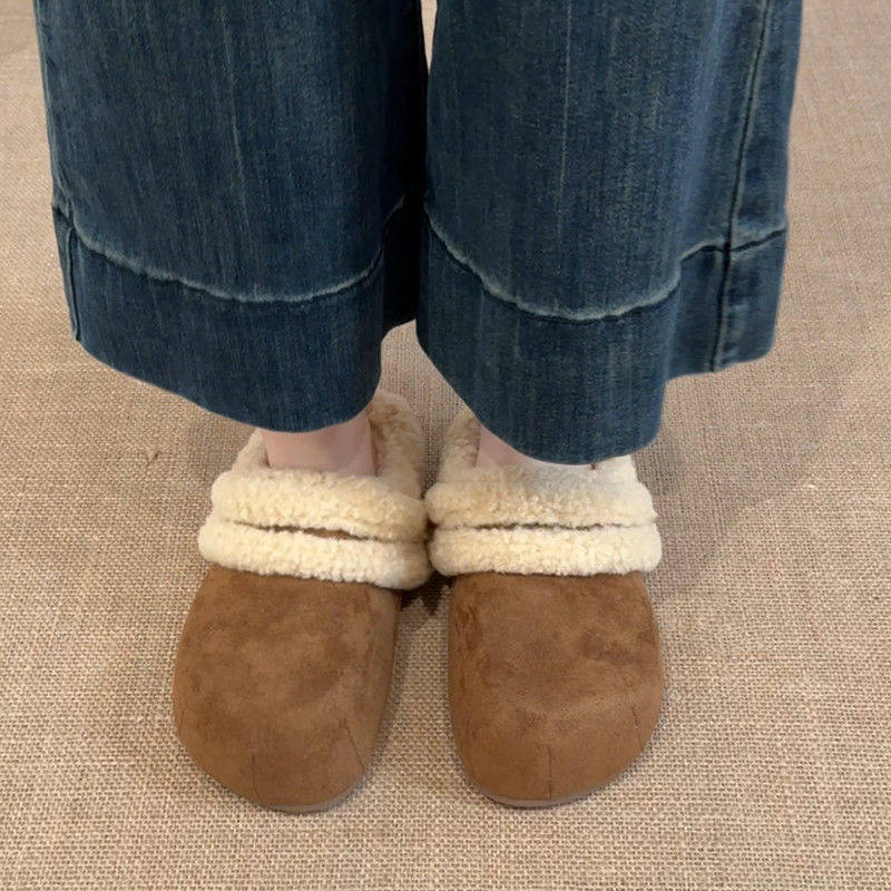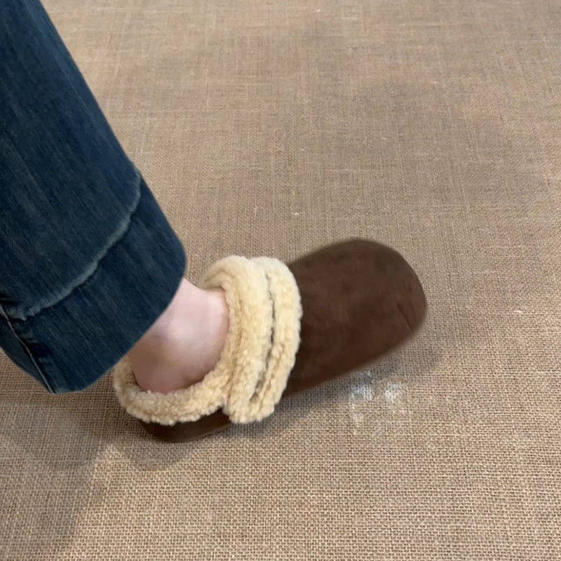 秋冬一脚蹬包头毛毛拖鞋 加绒厚底增高复古勃肯棉鞋 女外穿2025新款