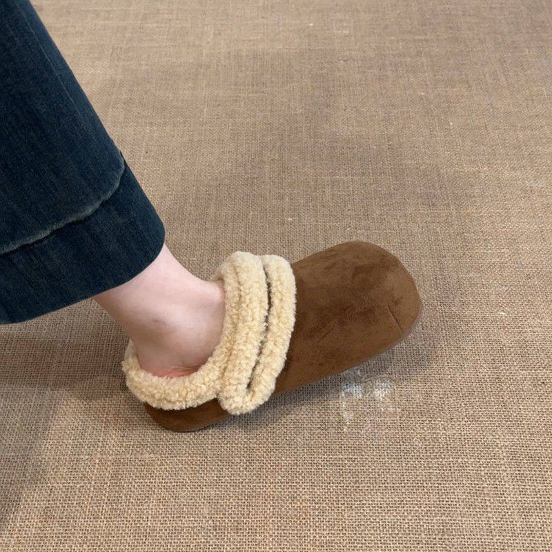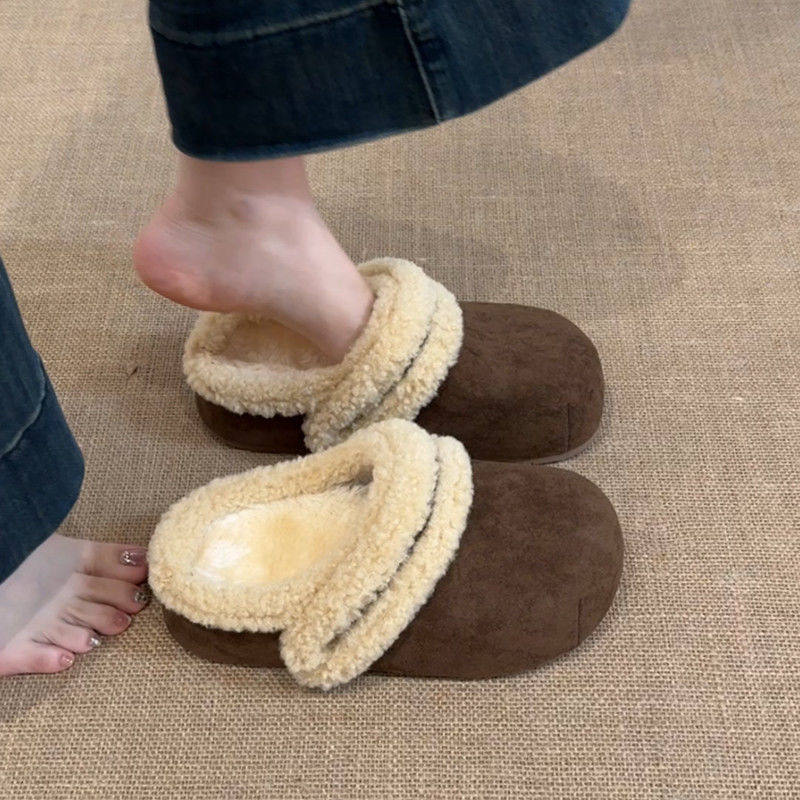 松糕厚底增高跟毛绒居家棉拖 秋季 包头半拖毛毛鞋 女冬外穿2025新款