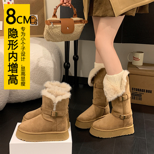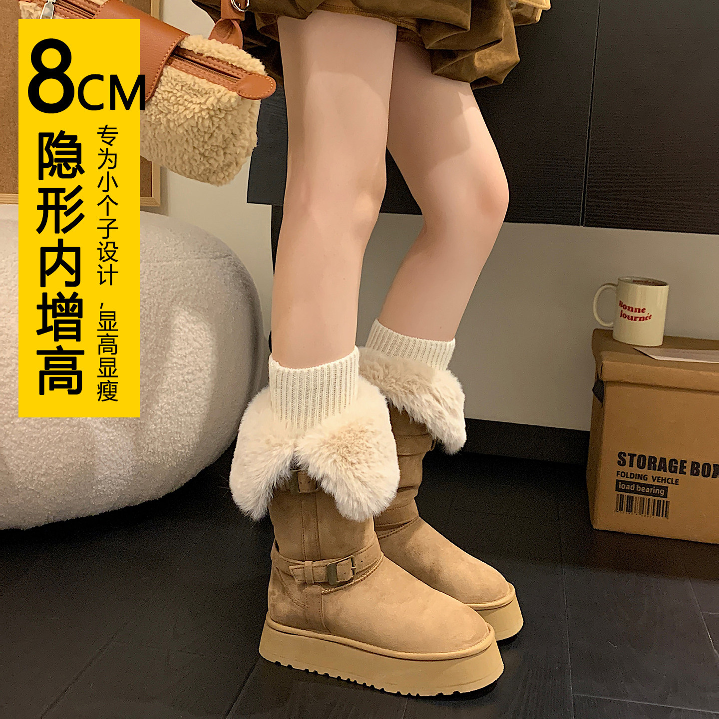 网红增高厚底保暖加绒外穿时尚 女冬季 雪地靴短靴 防水棉鞋 细细条