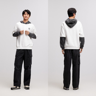 假两件连帽卫衣男春秋冬美式 潮牌半拉链重磅男生外套痞帅高领上衣