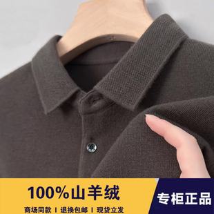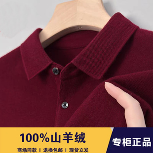 T恤羊毛衣针织打底衫 鄂尔多斯市100%山羊绒衫 中年男商务翻领长袖