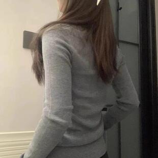 加厚修身 针织打底衫 显瘦圆领毛衣内搭上衣 正肩灰色春秋冬季 自留款