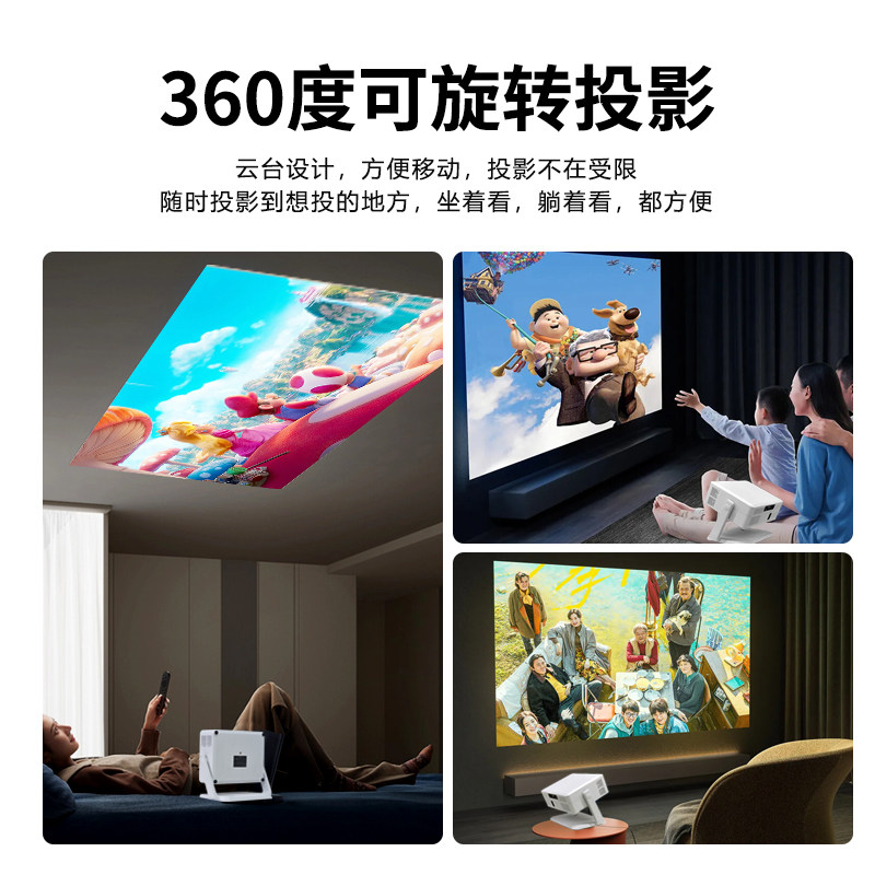 2025新款 宿舍学生会议办公免费看电视投影机 投影仪家用超高清旋转云台家庭影院卧室墙投手机投屏小型便携式