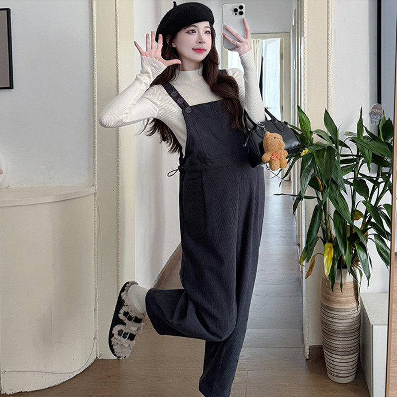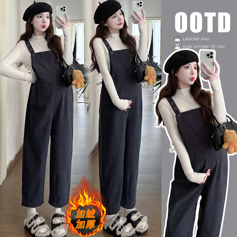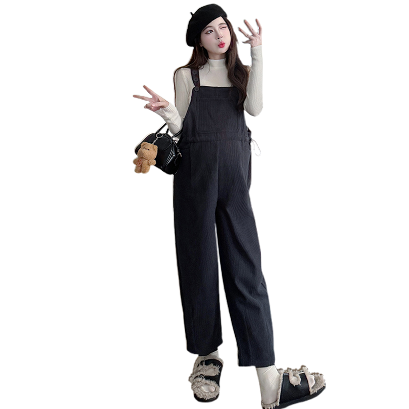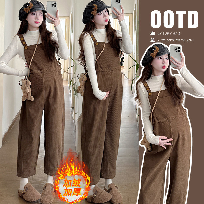 子冬季 灯芯绒怀孕裤 外穿加绒保暖背带裤 冬装 简约百搭休闲裤 孕妇裤