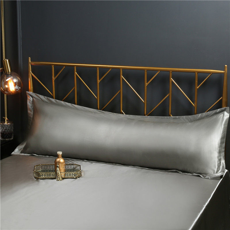 双面仿真丝丝绸双人枕头套长款 双人长枕套1.2米1.5情侣婚庆枕芯
