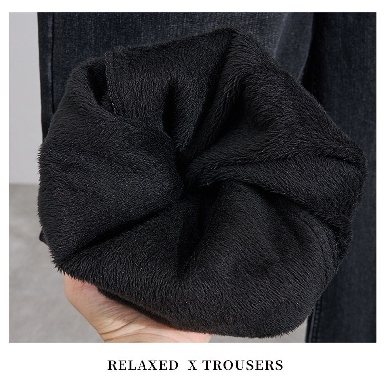 直筒高级裤 加厚保暖男裤 子 男冬季 班尼路S&K系列复古蓝加绒牛仔裤
