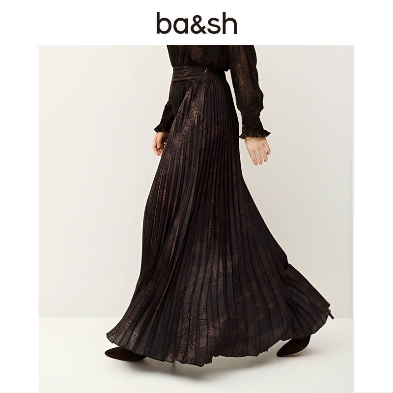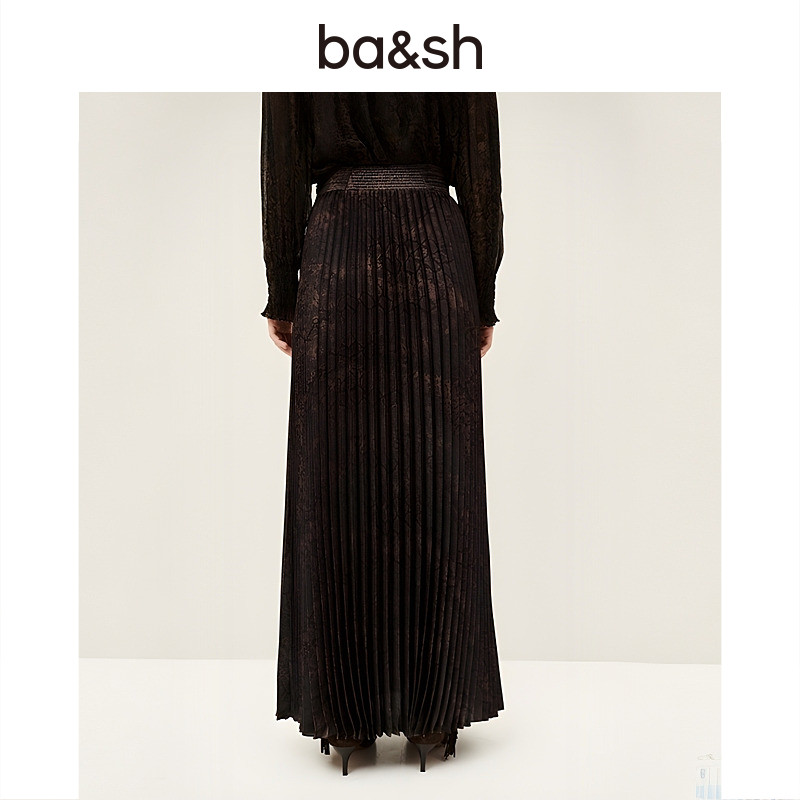 半身裙1H25HOWI 度假风复古印花百褶裙女长款 bash春季 沙海蟒纹法式