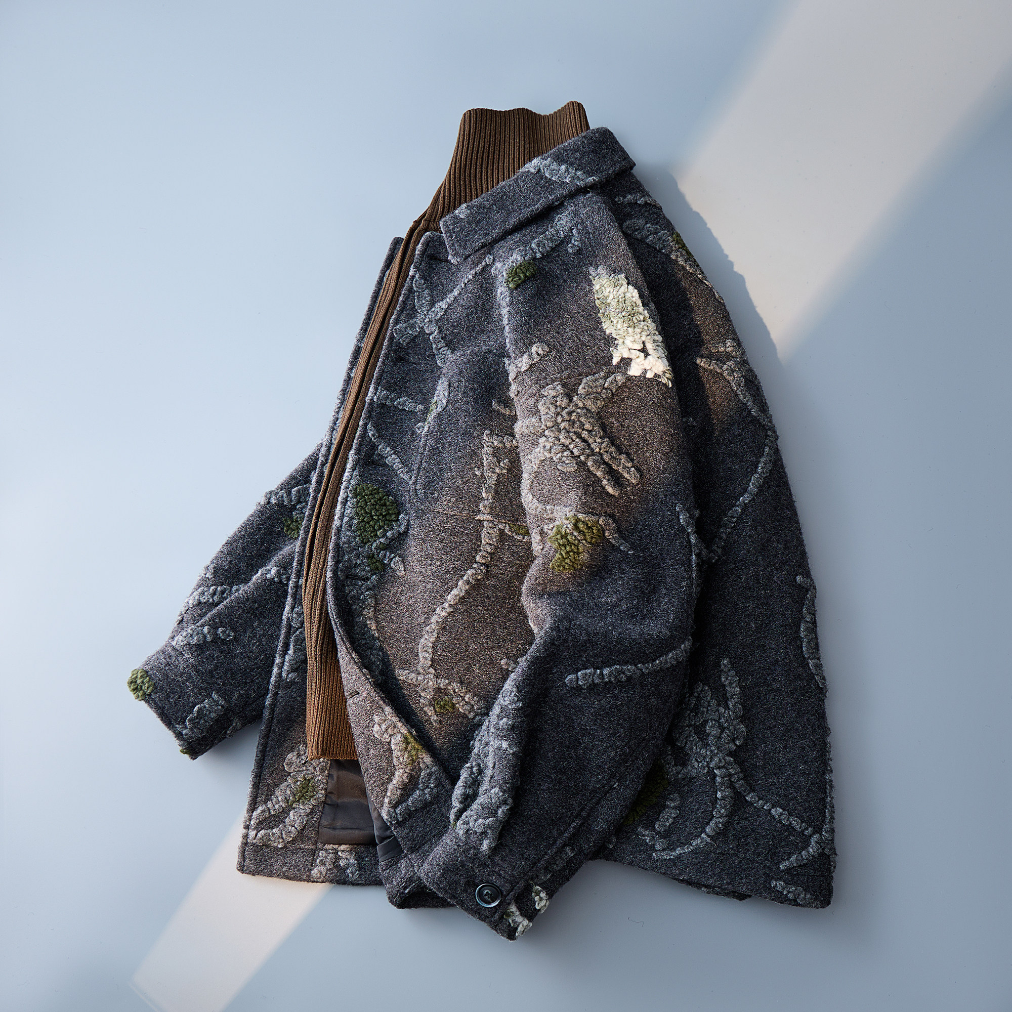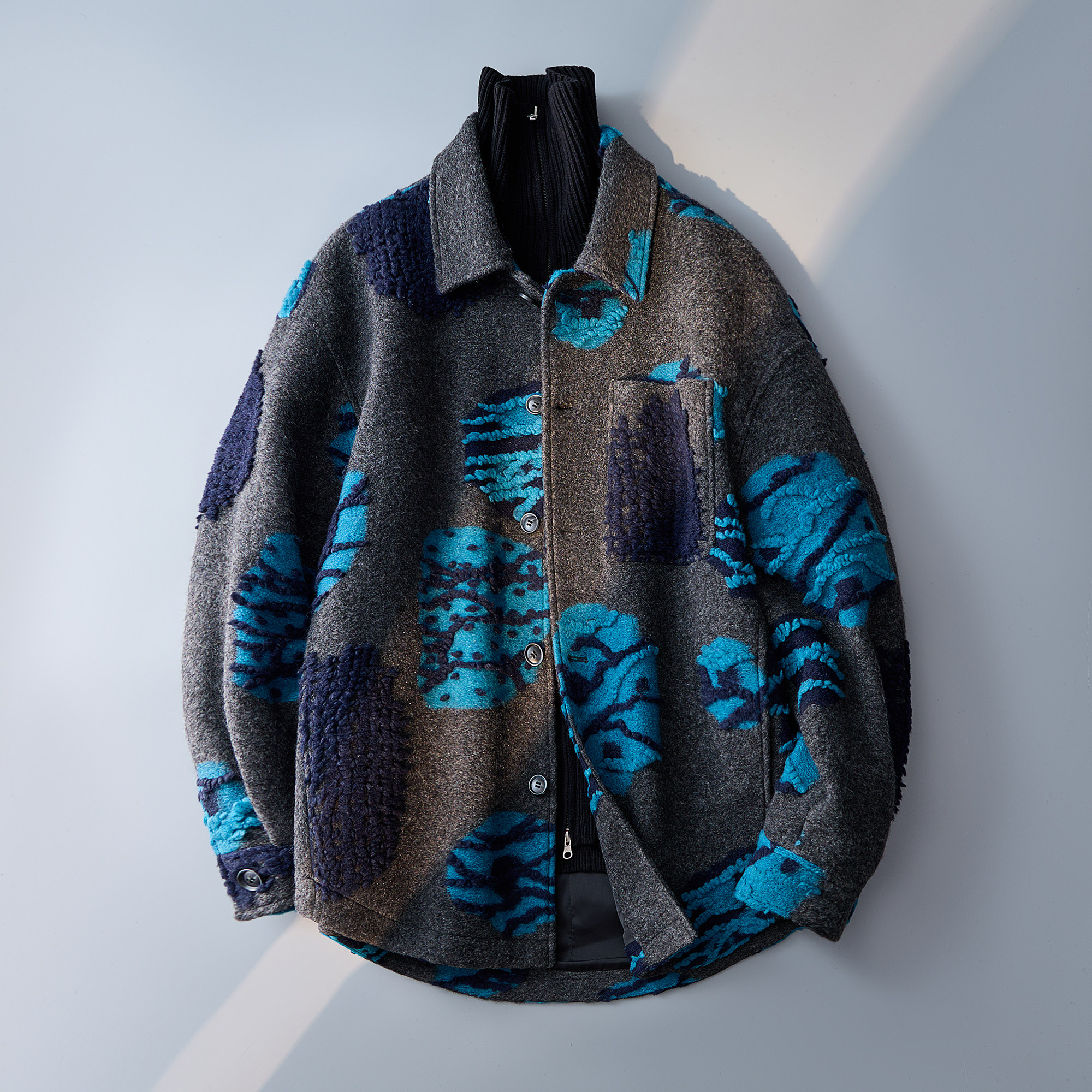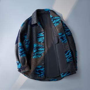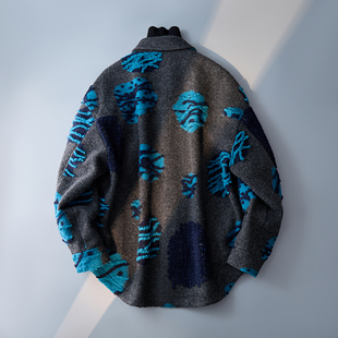 灰色 95291P358控699 翻领宽毛呢大衣男秋冬外套纹理肌理感6016