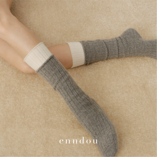 enndou 100%羊绒加厚中筒袜保暖袜子羊绒袜温暖长袜 秋冬新款