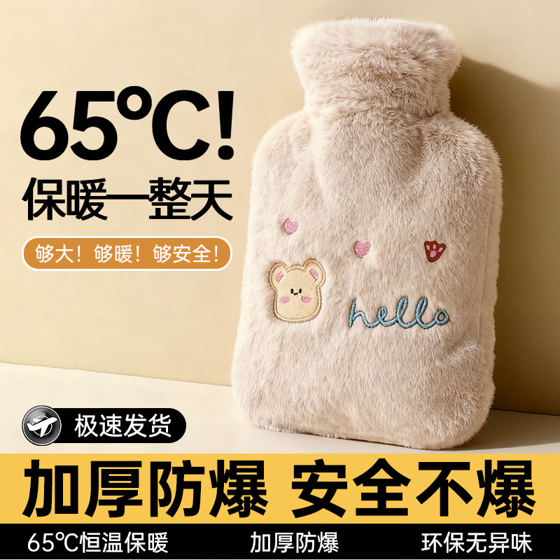 热水袋暖水袋注水式 毛绒暖手宝暖脚被窝专用灌水小号暖手袋暖宝宝